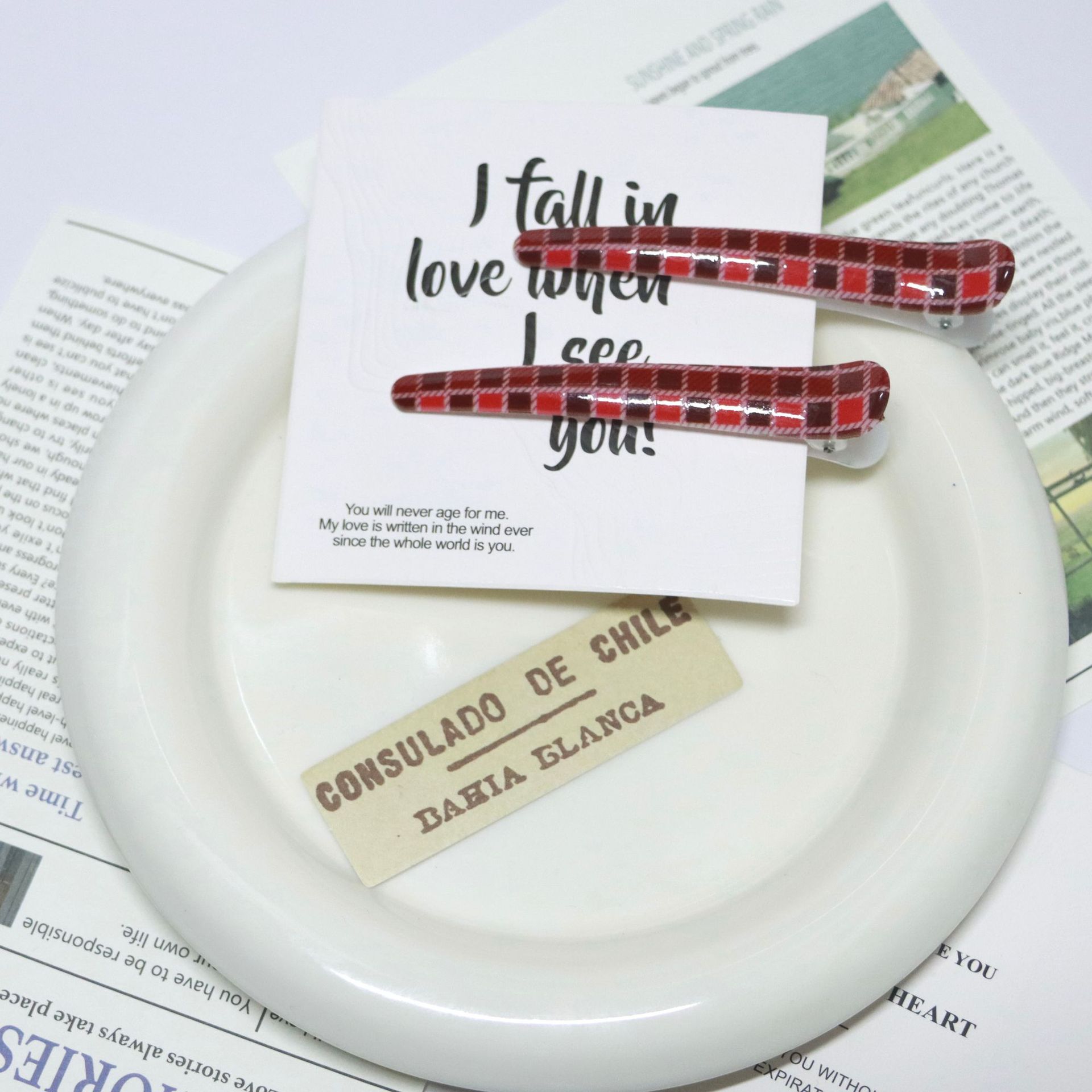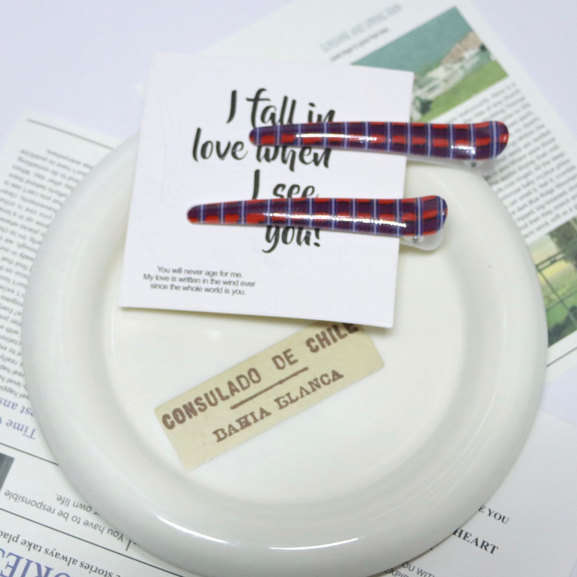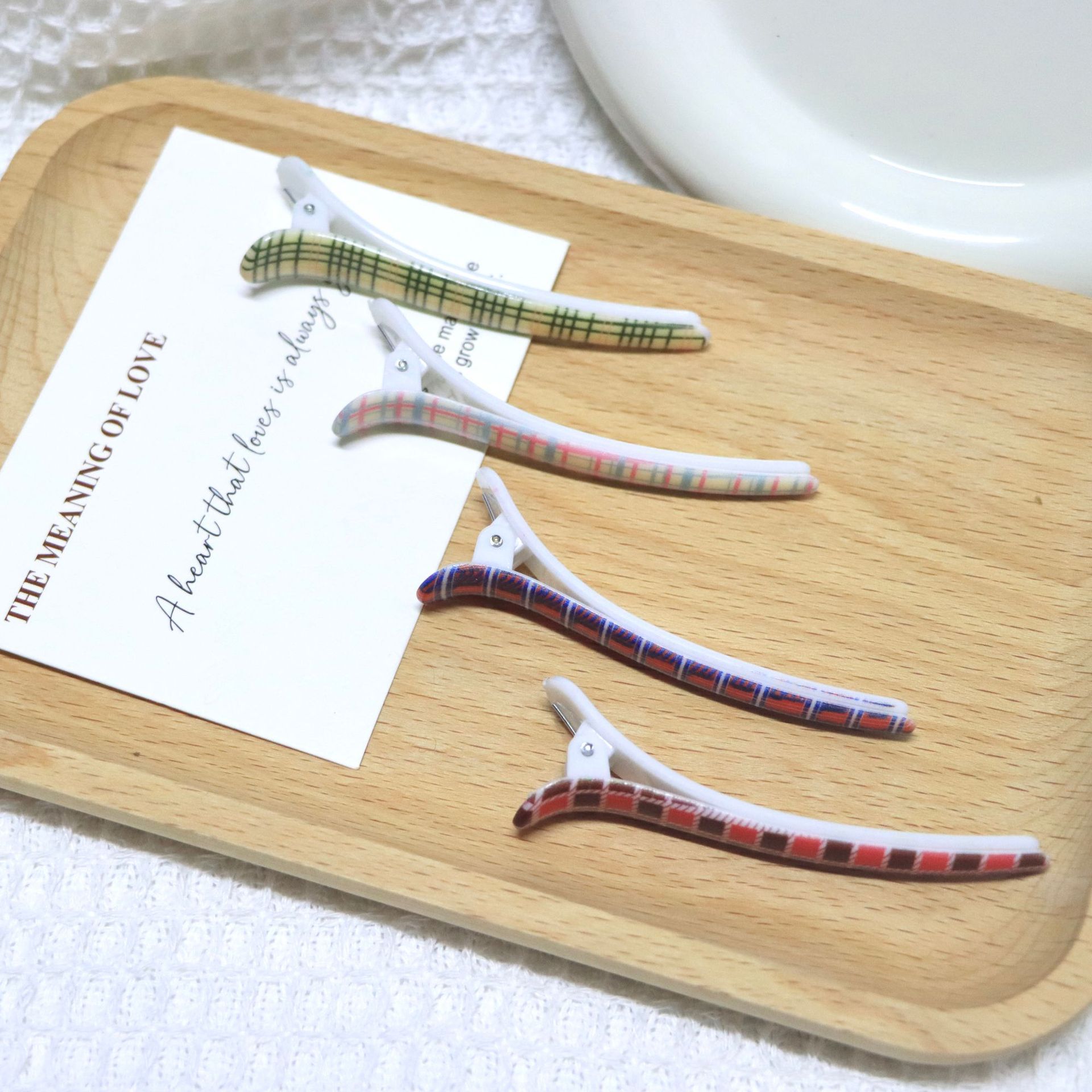 크로스보더 물떼새그물 무늬 프린트 브리티시 스타일 헤어핀, 격자무늬 앞머리 옆머리 집게핀, 일자핀 헤어 액세서리 도매스토어 가기