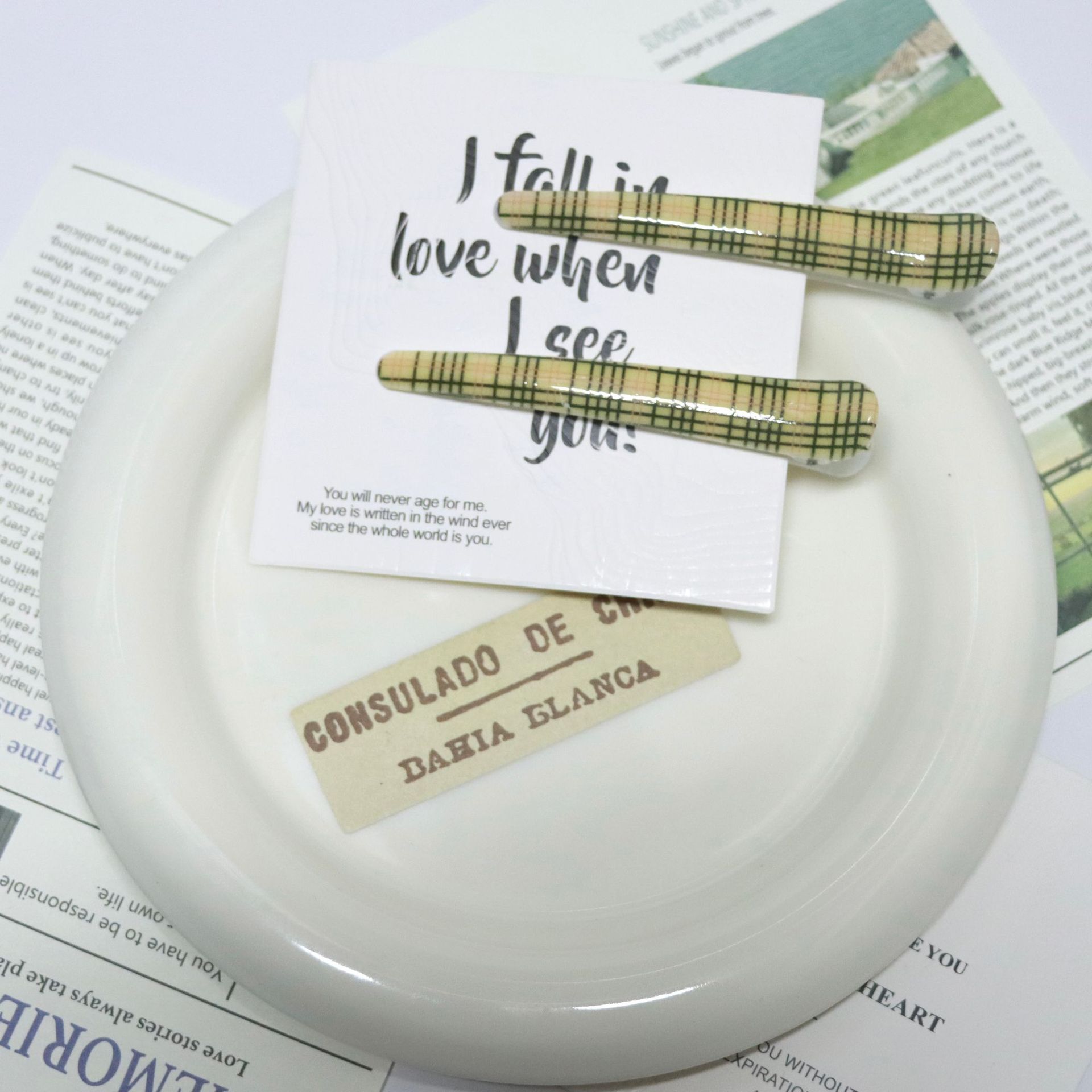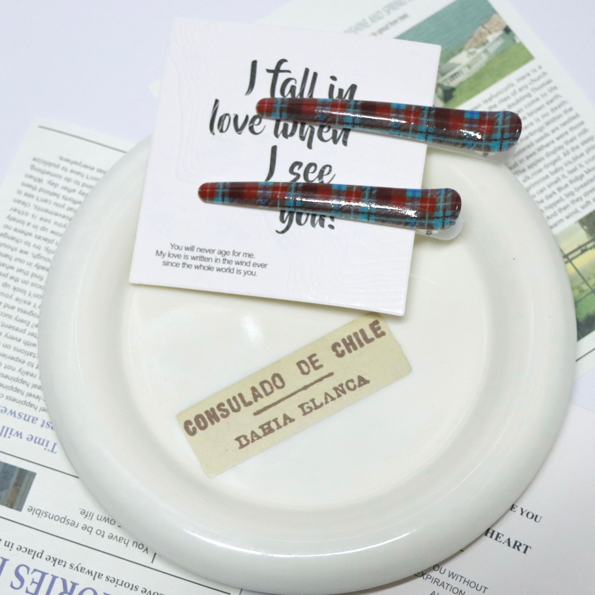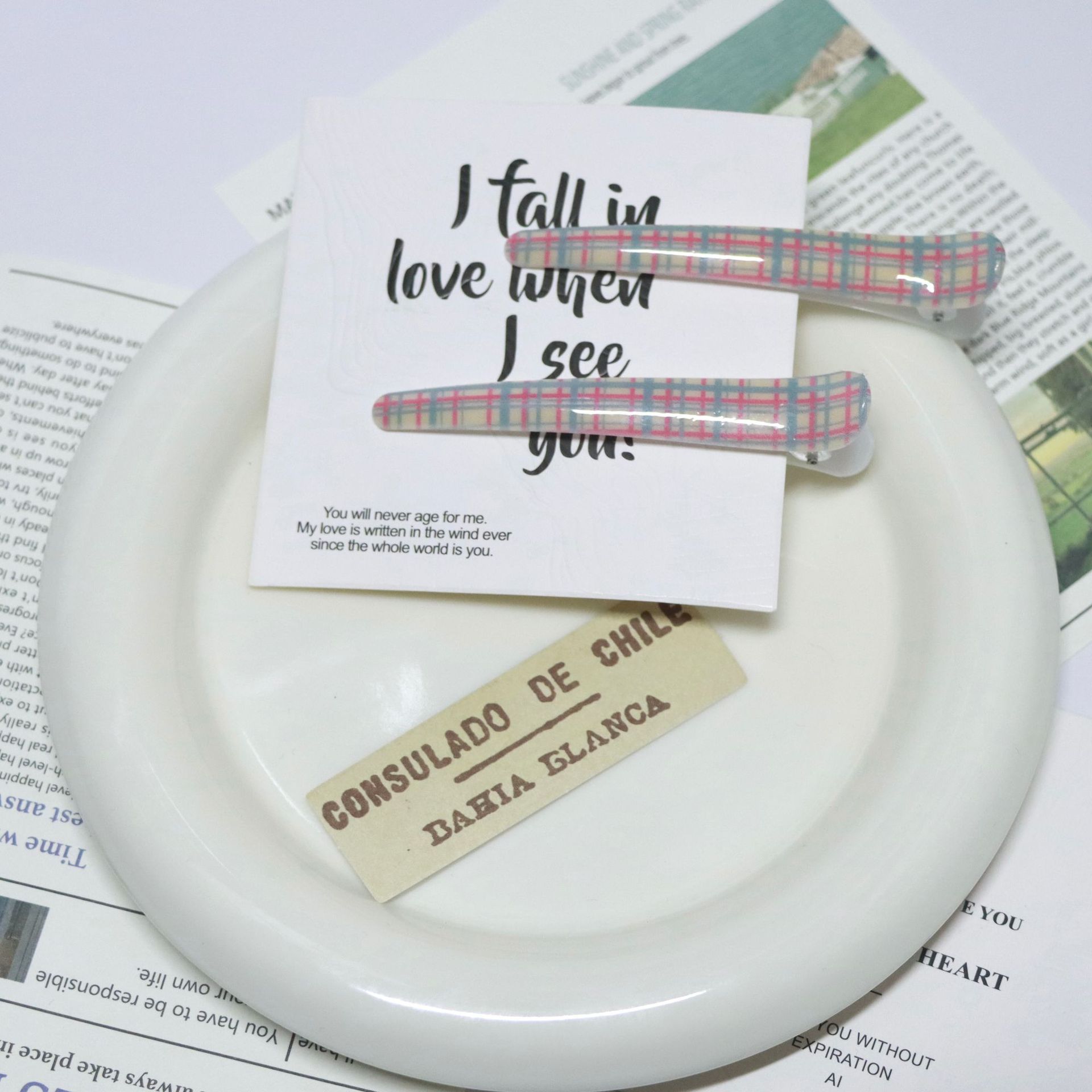 크로스보더 물떼새그물 무늬 프린트 브리티시 스타일 헤어핀, 격자무늬 앞머리 옆머리 집게핀, 일자핀 헤어 액세서리 도매스토어 가기