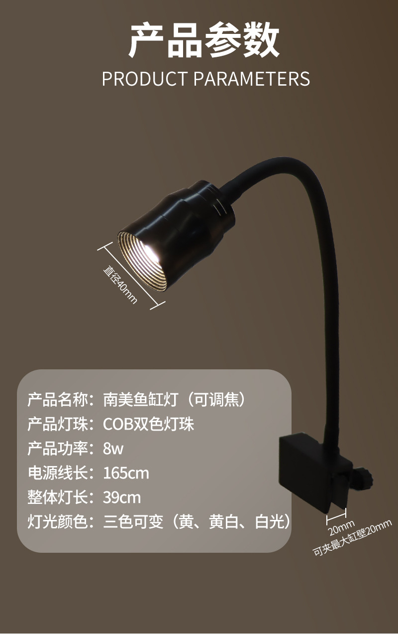 물고기 탱크 남아메리카 스포트라이트 led 클램프 네이티브 탱크 아쿠아 잔디 풍경 초점을 맞춘 3 색 가변 빛 물고기 탱크 스포트라이트