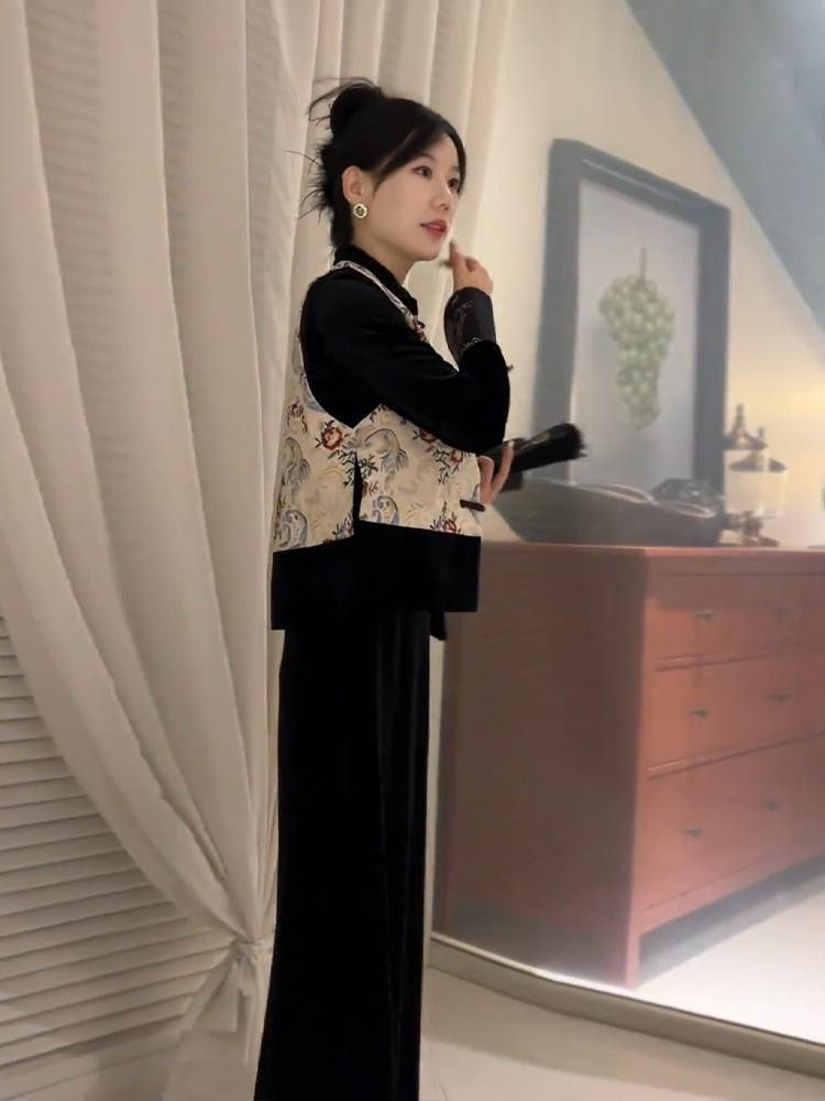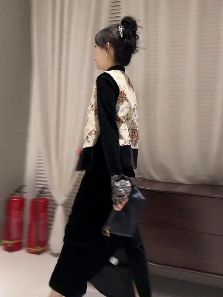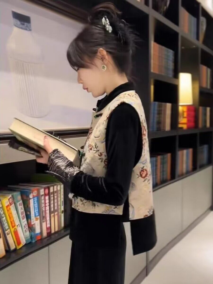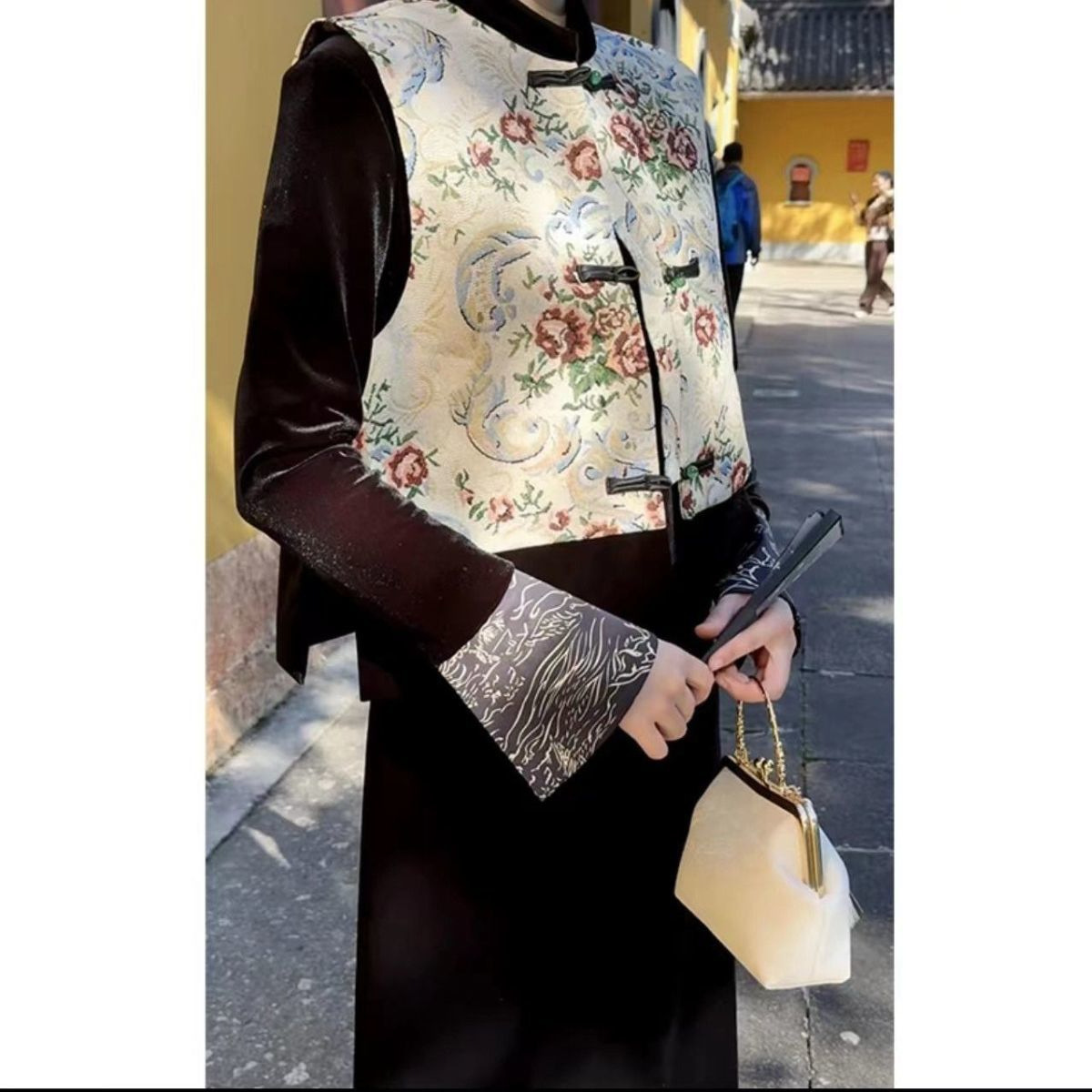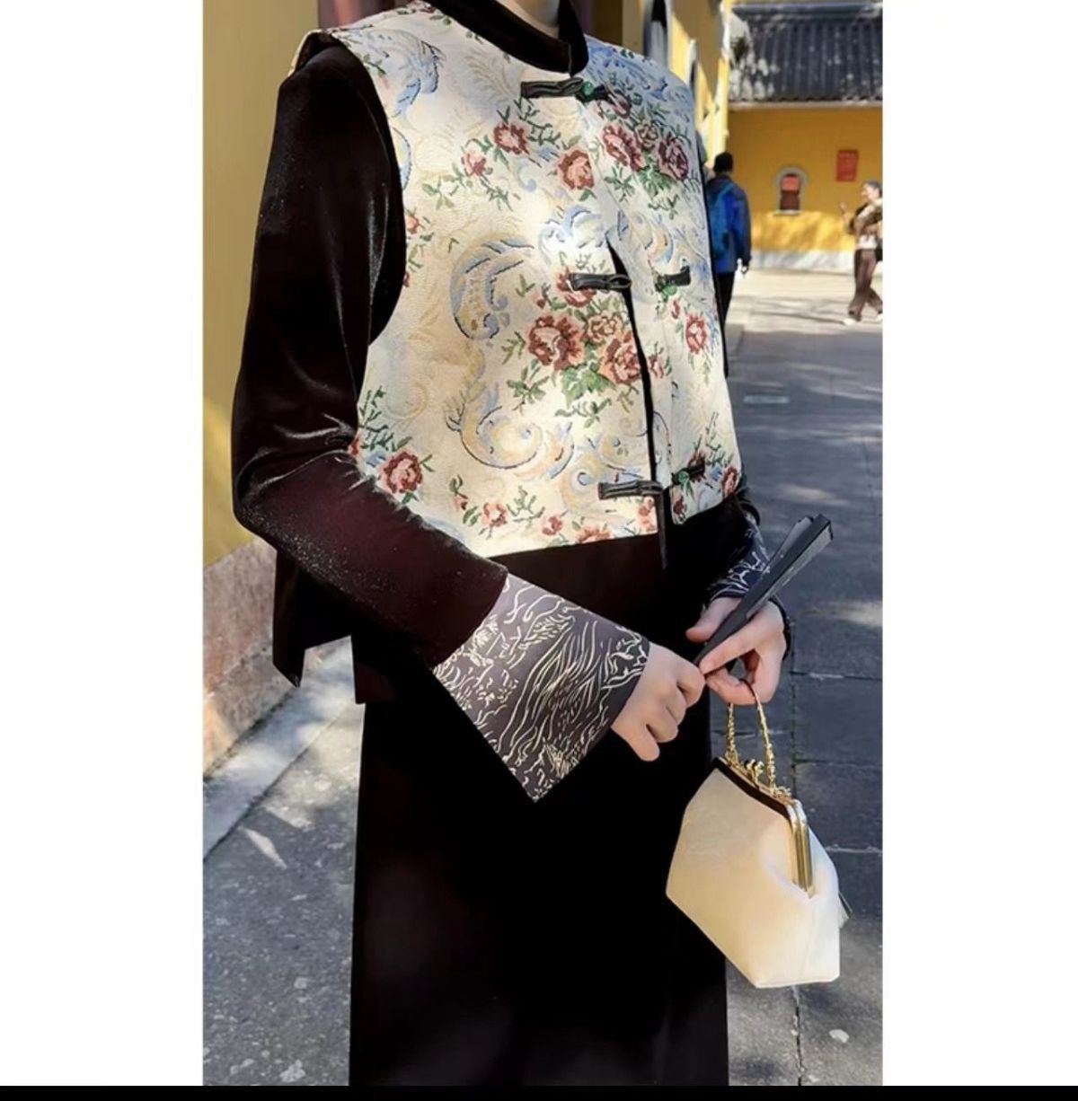 세트 여성 2025 봄과 가을 새로운 하이 엔드 센스 새로운 중국 스타일 국가 스타일 버클 조끼 재킷 원피스 투피스 세트스토어 가기