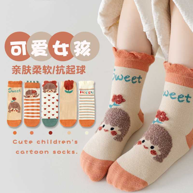 공장 도매 어린이 양말 가을과 겨울 새로운 대형 어린이 만화 면화 양말 5 쌍 빗질 남성 양말 학생 양말스토어 가기