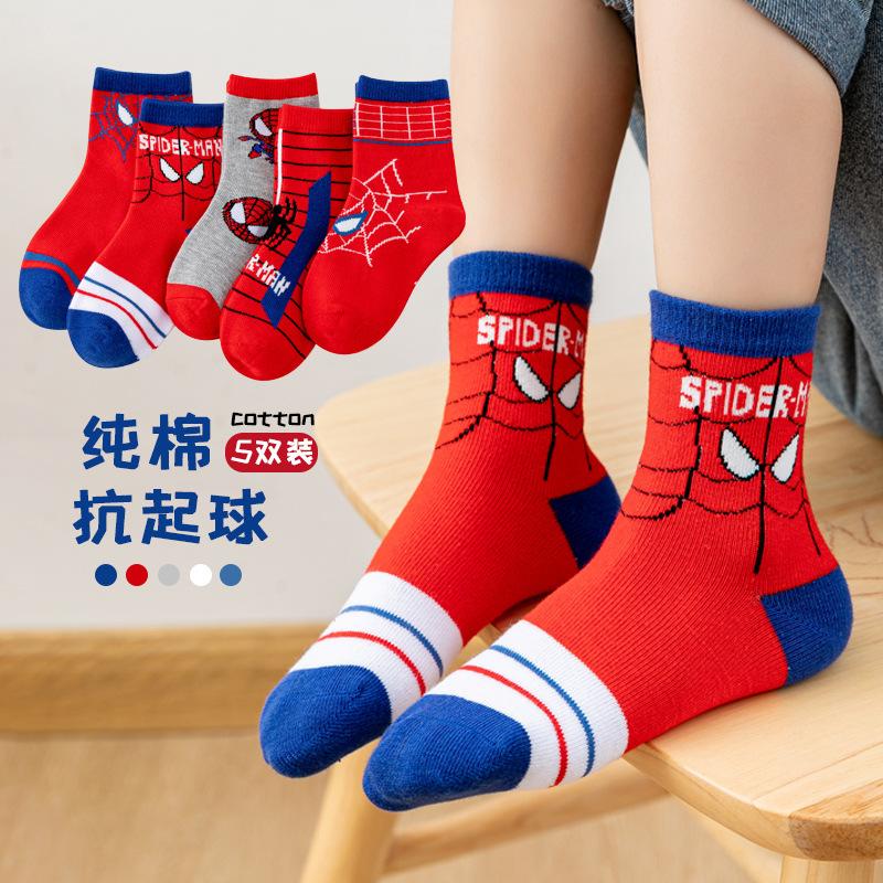 공장 도매 어린이 양말 가을과 겨울 새로운 대형 어린이 만화 면화 양말 5 쌍 빗질 남성 양말 학생 양말