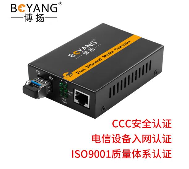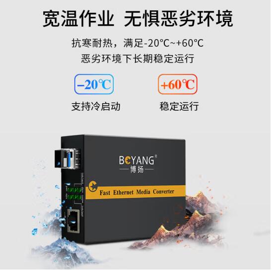 博扬 BY-WF513A-LC-40KM电信级百兆单模单纤光纤收发器 光电转换器 支持14槽机架 外置电源A端 40公里 LC接口*1*合格证*1保修卡*1