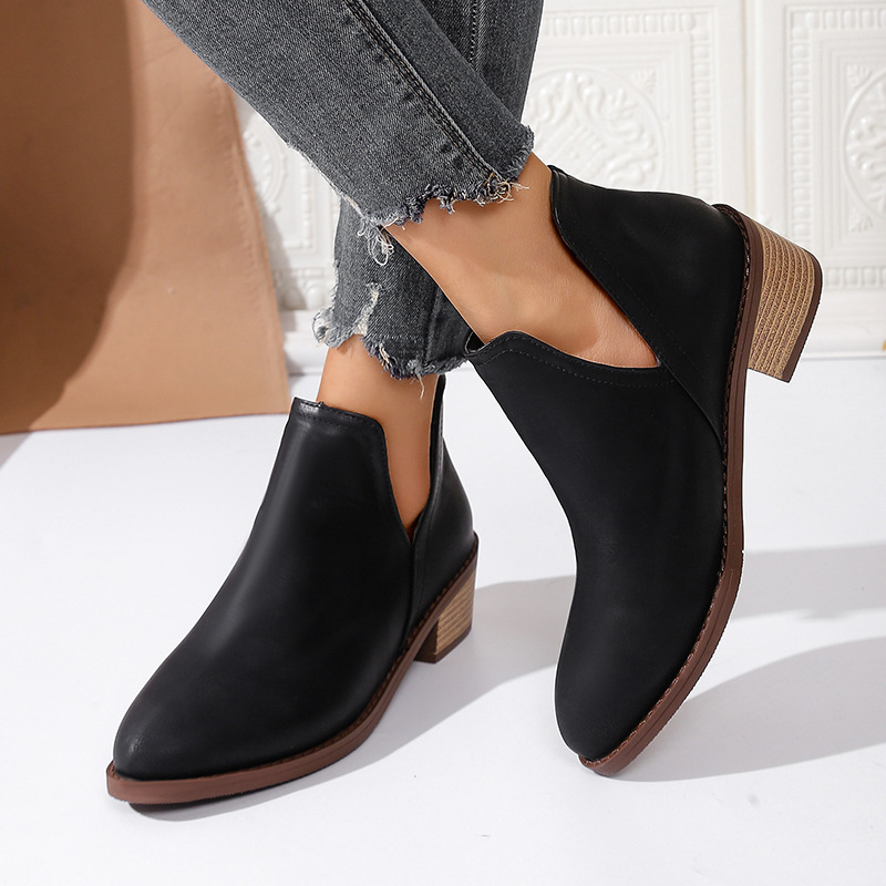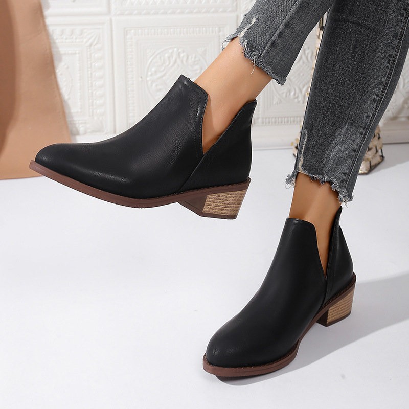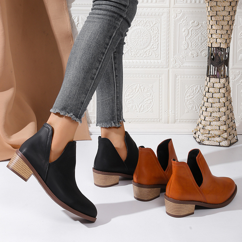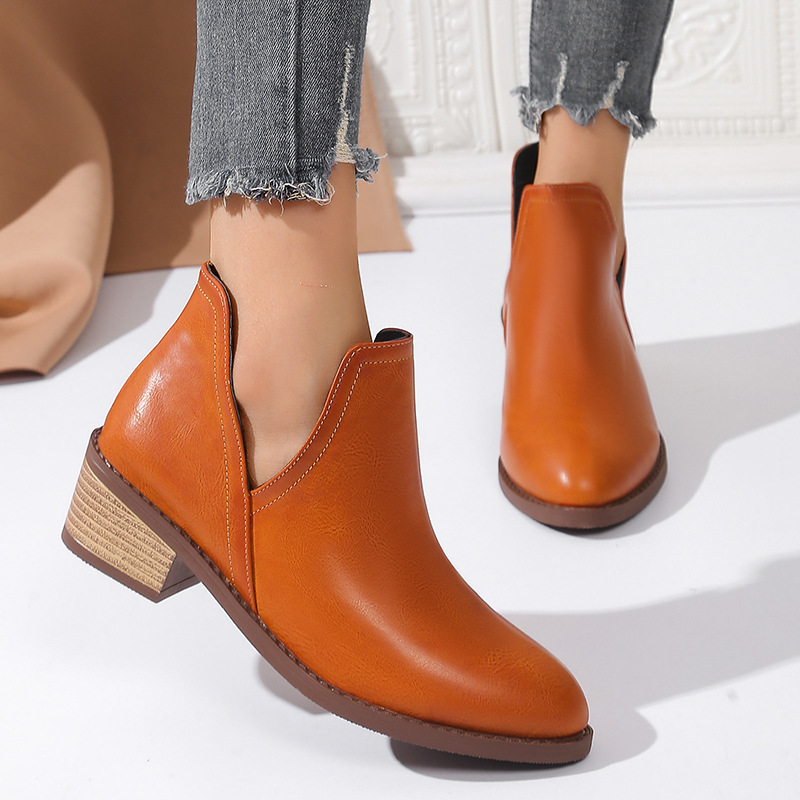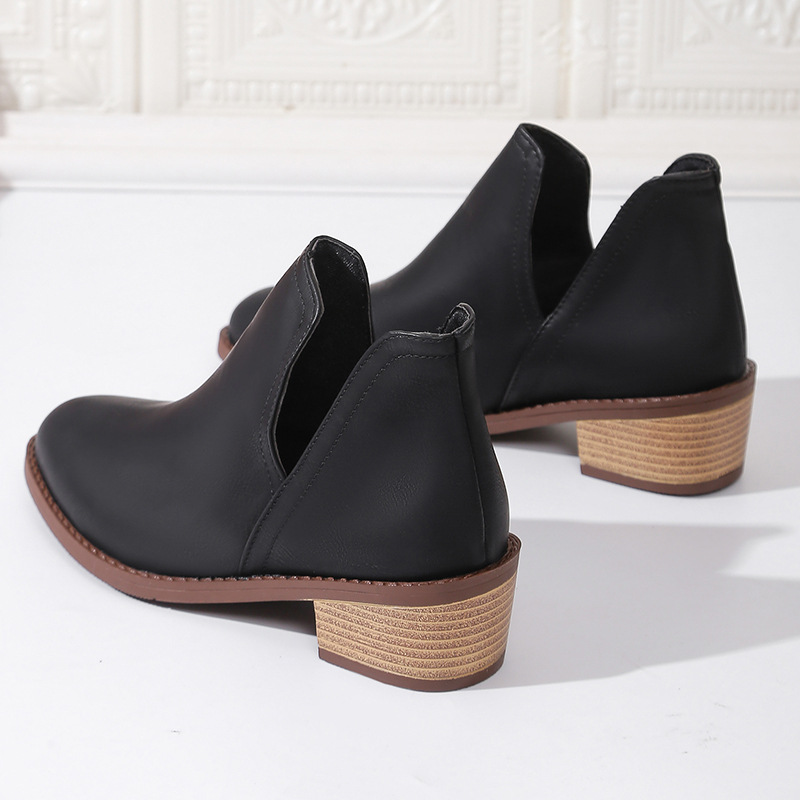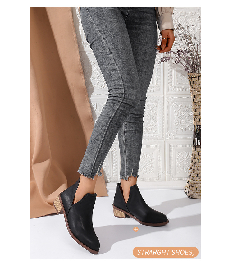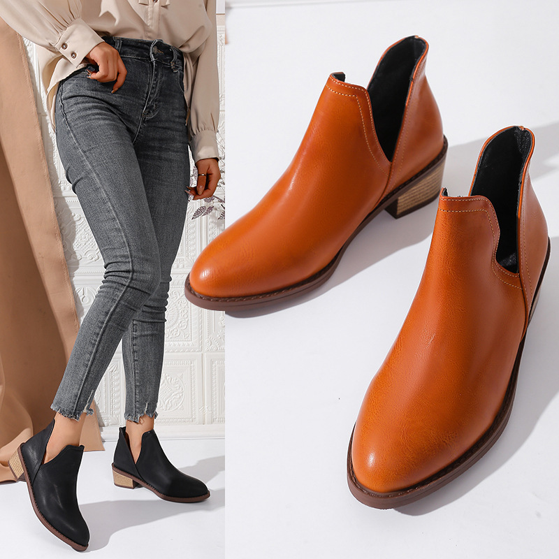 독립 역 국경 간 플러스 사이즈 짧은 배럴 마틴 부츠 여성 유럽과 미국의 가을 및 겨울 새로운 미드 힐 뾰족한 단색 첼시 여자 부츠스토어 가기