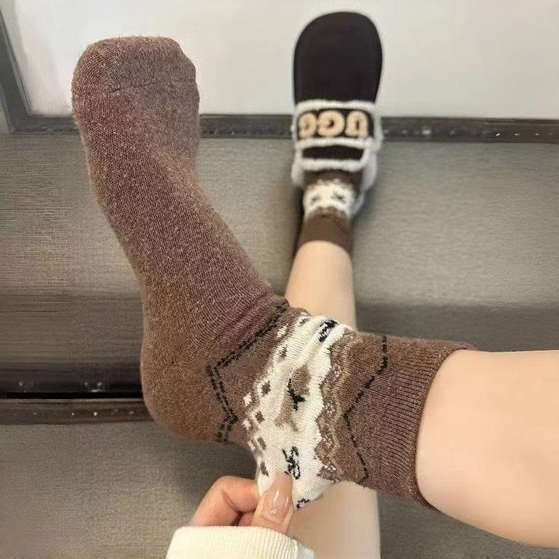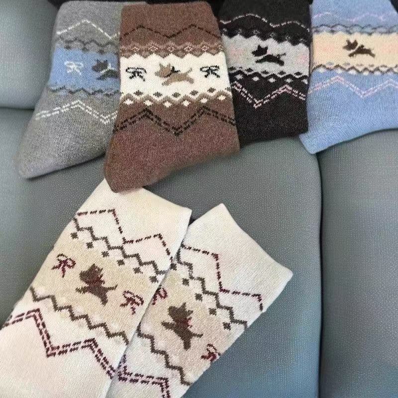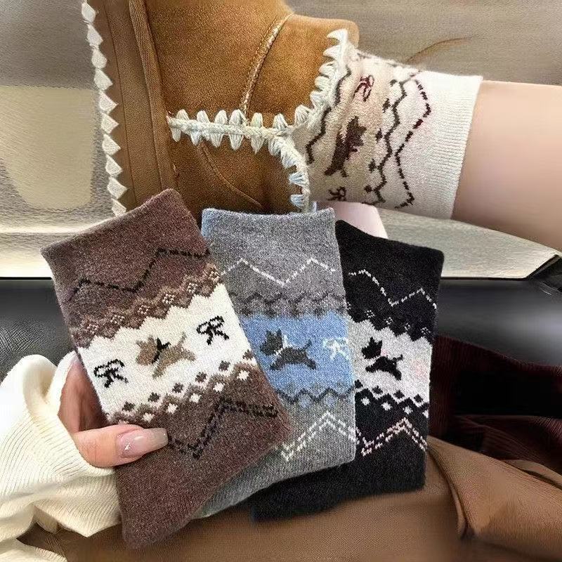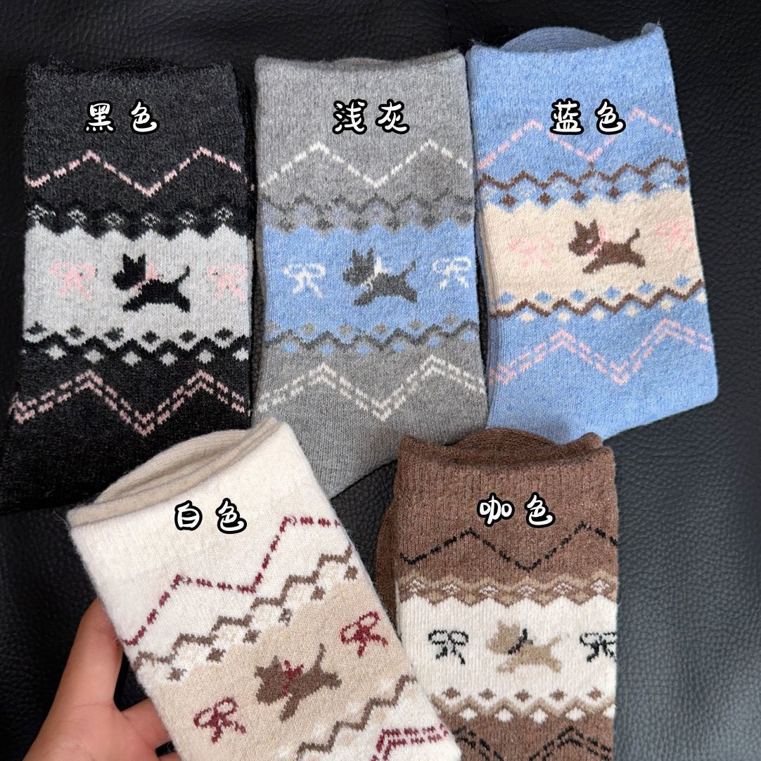 페어랜드 강아지 양말 분위기 가을과 겨울 색상 어울리는 양모 기모 두꺼운 복고풍 만화 따뜻한 양말