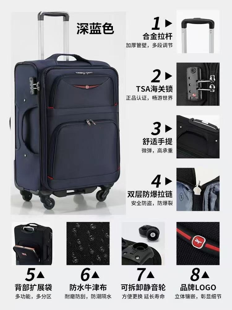 • 755 블루 업그레이드 방폭 지퍼 + 세관 잠금 장치 + 분해 휠 + 전면 및 후면 포켓