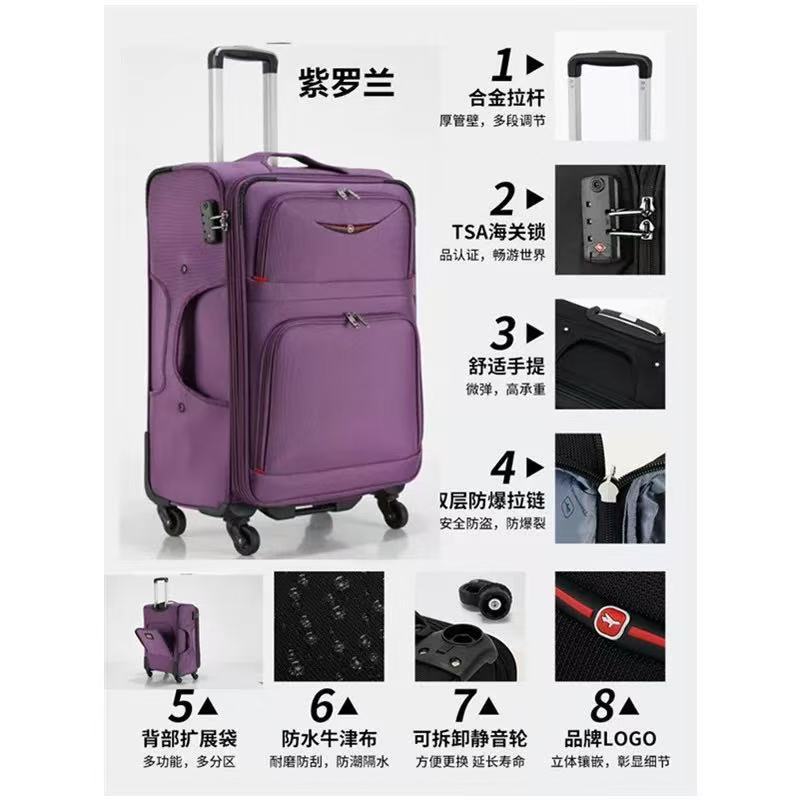 • 755 보라색 업그레이드 방폭 지퍼 + 세관 잠금 장치 + 분해 휠 + 전면 및 후면 포켓