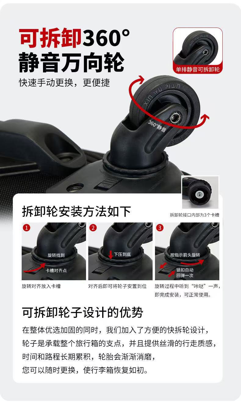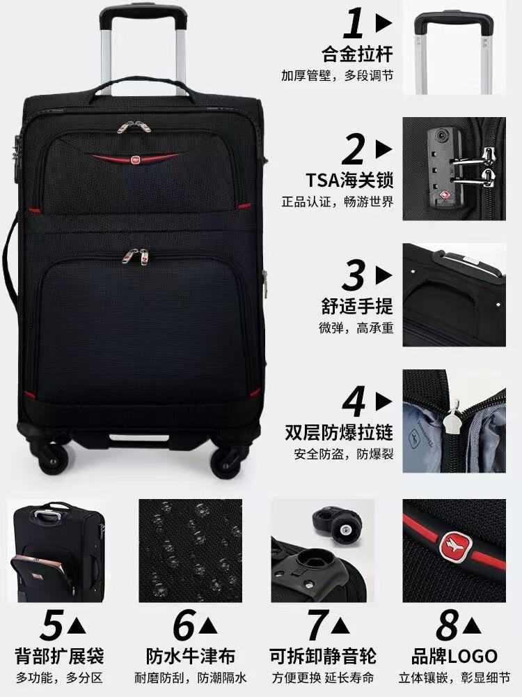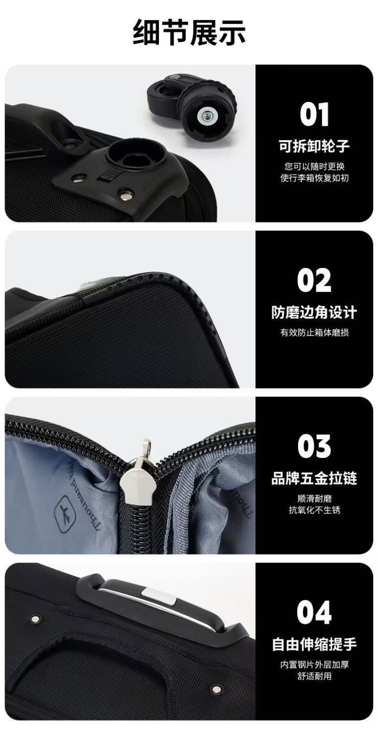 • 755 블랙 업그레이드 방폭 지퍼 + 세관 잠금 장치 + 분해 휠 + 전면 및 후면 포켓