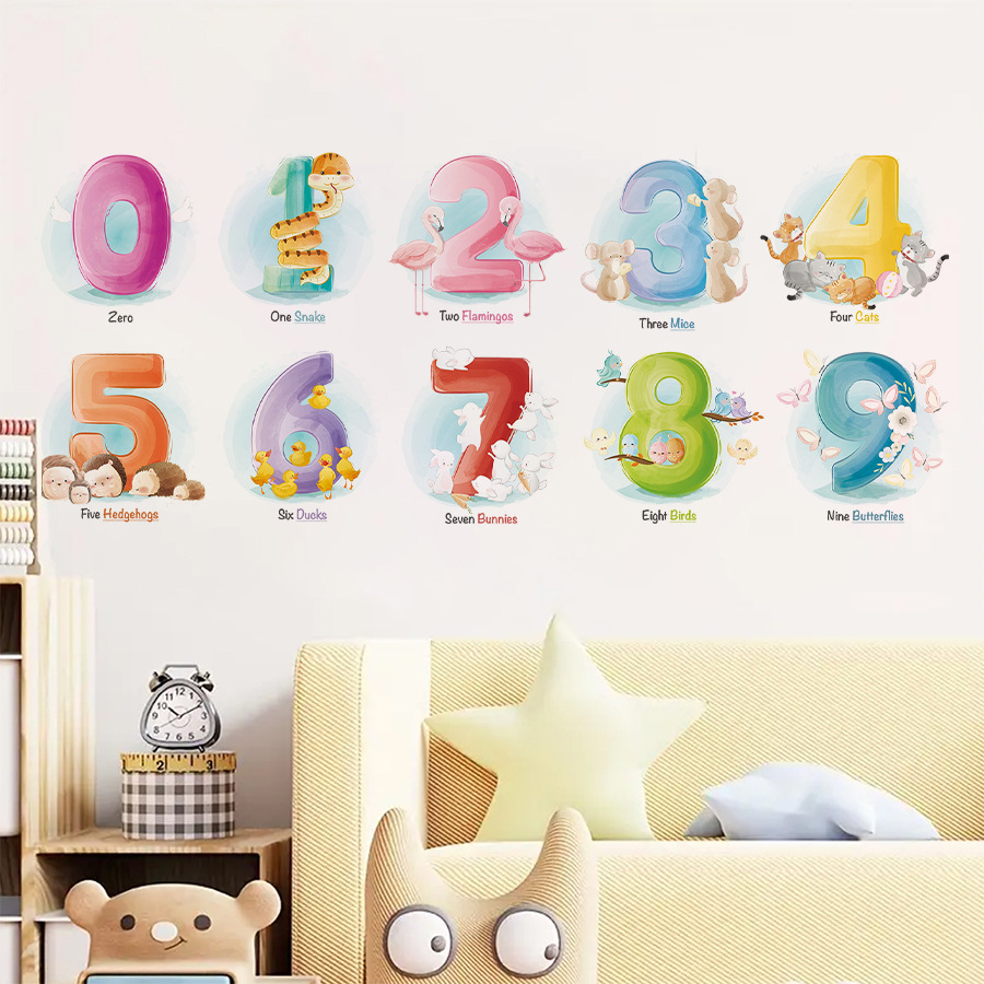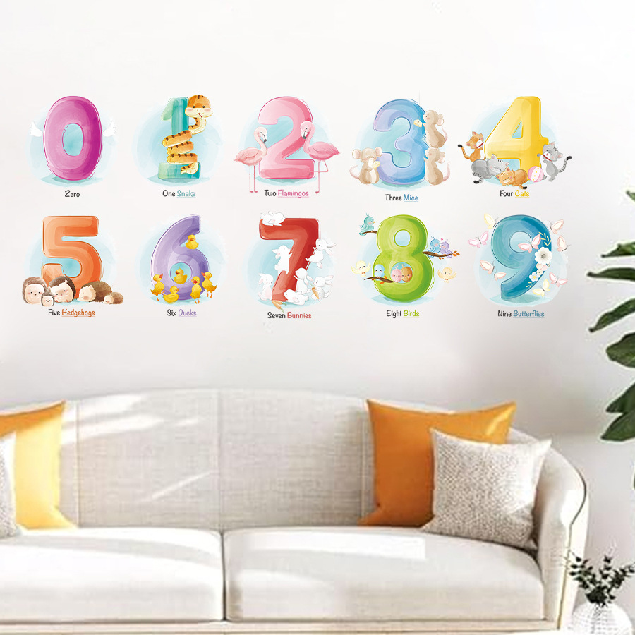 만화 귀여운 창조적 인 디지털 동물 자기 접착 벽 스티커 어린이 방 유치원 벽 장식 스티커 BR1179E스토어 가기