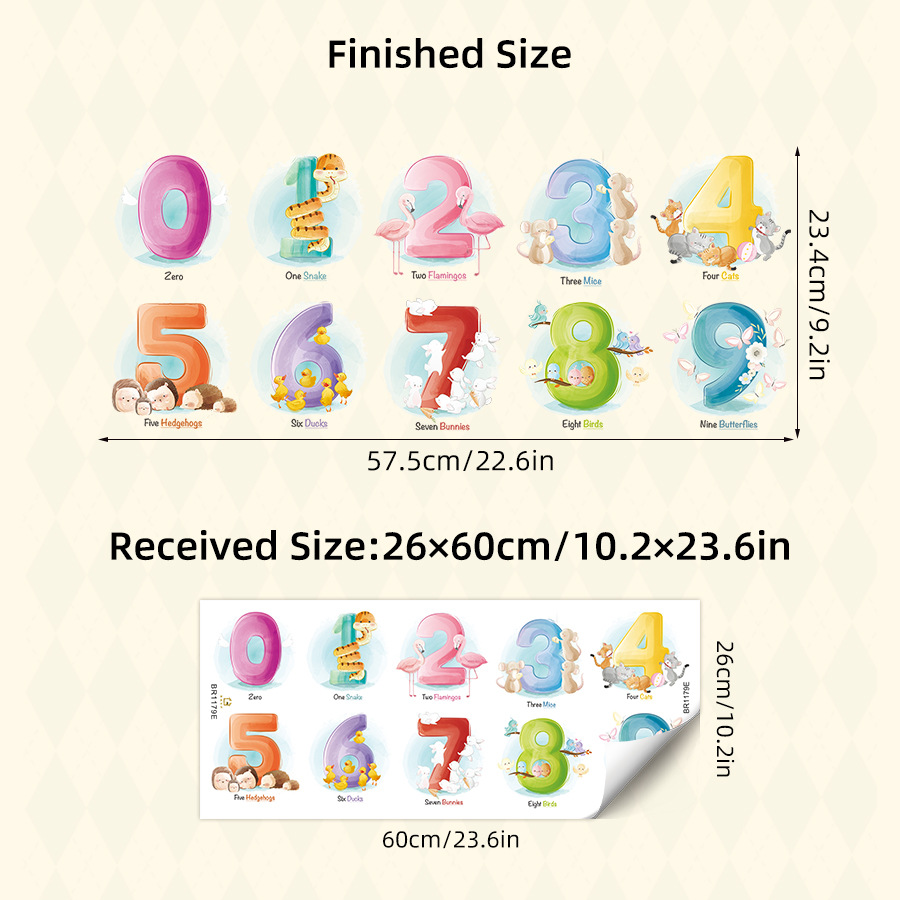 만화 귀여운 창조적 인 디지털 동물 자기 접착 벽 스티커 어린이 방 유치원 벽 장식 스티커 BR1179E