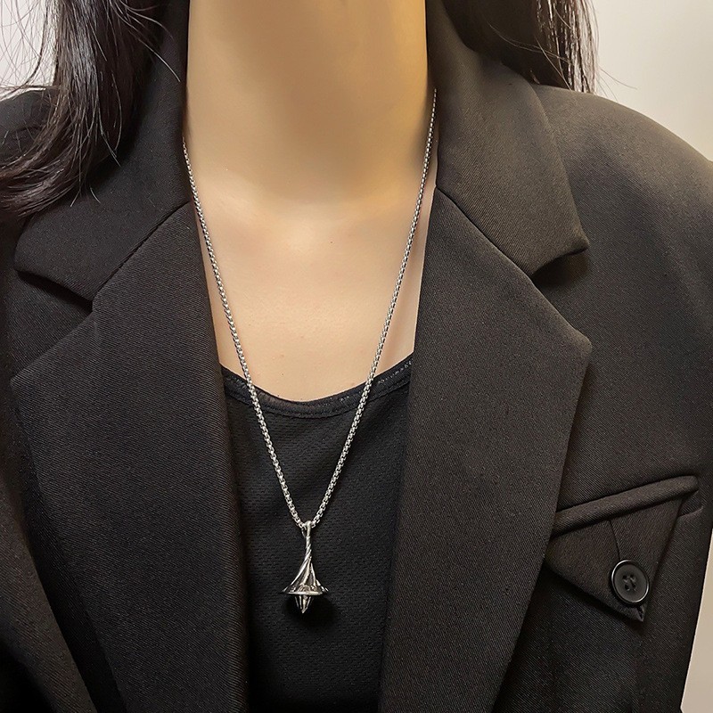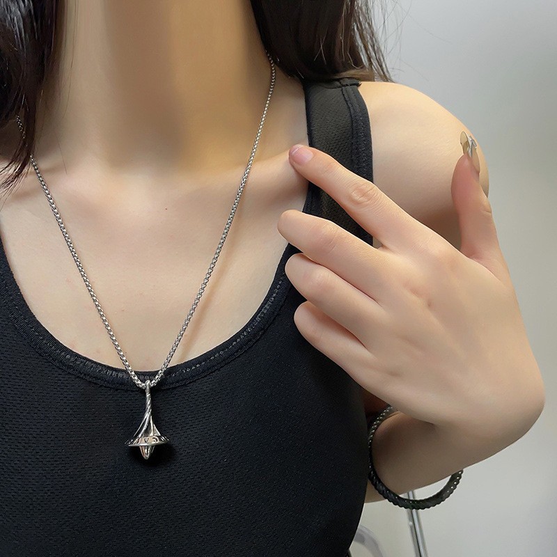 니치 힙합 패션 레트로 편지 외계인 플라잉 접시 펜던트 목걸이 남성 및 여성 맞춤형 실버 긴 모직 체인 트렌디스토어 가기