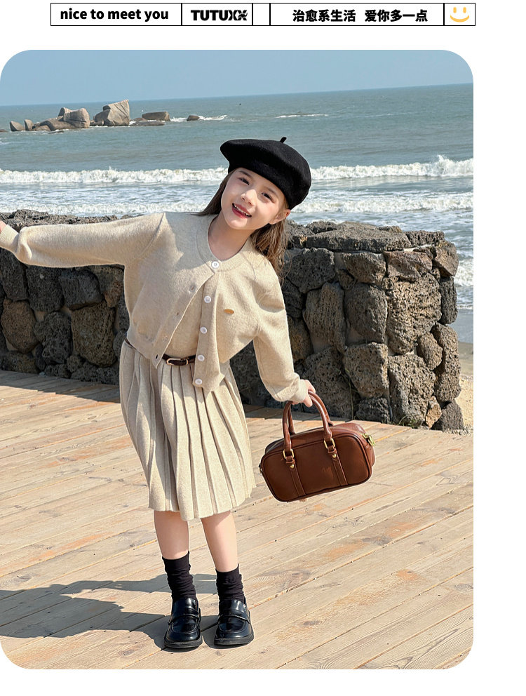 Tu Tu Elephant Girls, 2025 년 봄 세트 가려움증이 아닌 Andy Velvet 높은 탄성 캐주얼 부모-어린이 스웨터 스커트스토어 가기