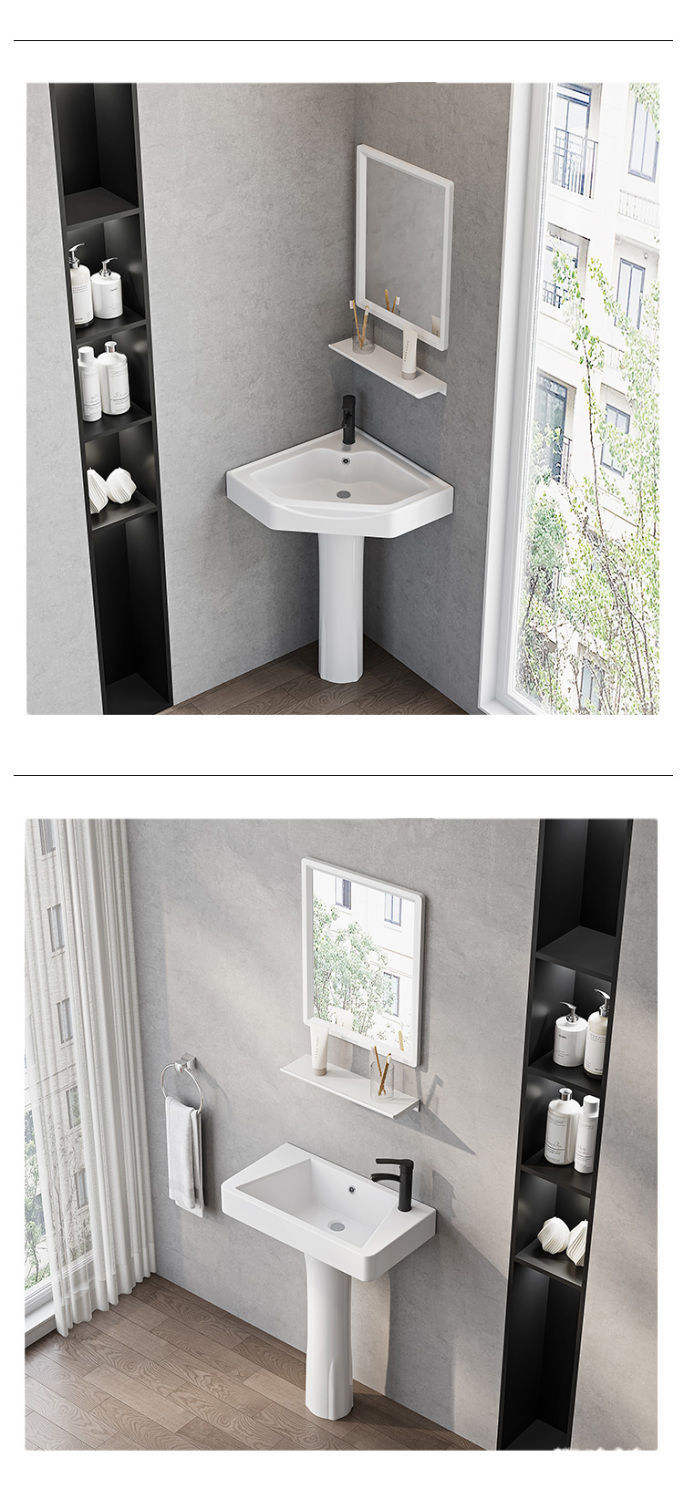 욕실 칼럼 분지 세척 분지 바닥 유형 세척 분지 통합 사이드 코너 분지 왼쪽 및 오른쪽 분지 발코니 세척 분지