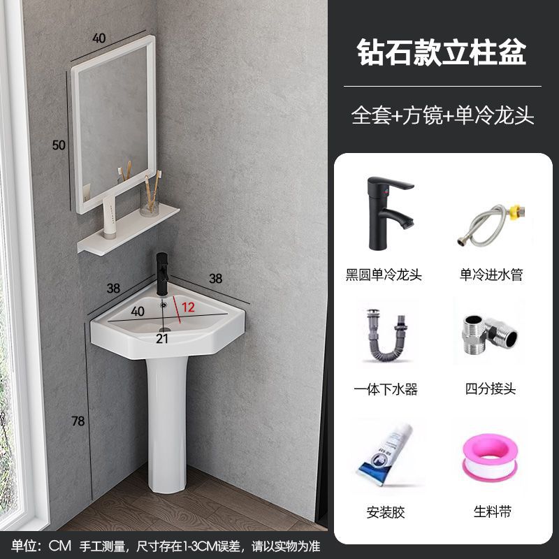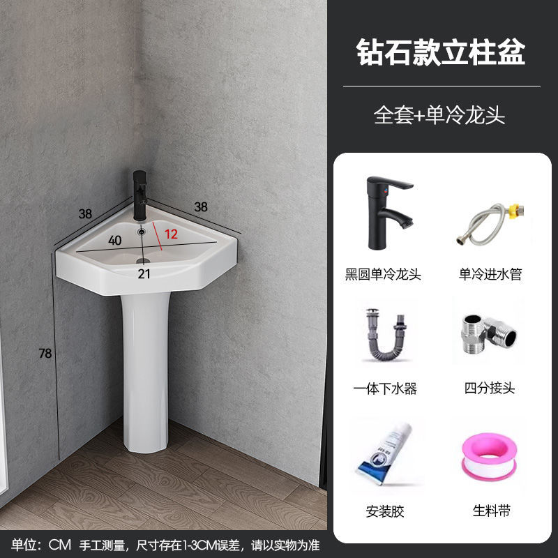 • [저렴한 세트] 싱글 냉수수전 + 하수관 - 38*38 기둥 세면대 [다이아몬드 세면대]