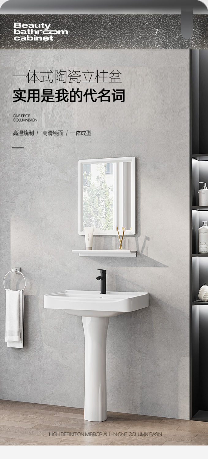 • [실용적인 조합] 싱글 냉수수전 + 사각거울 - 43*36 기둥 세면대 [웃는얼굴 세면대]