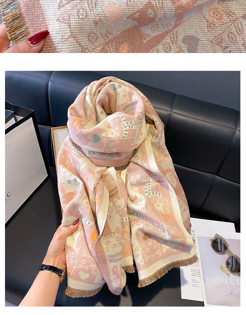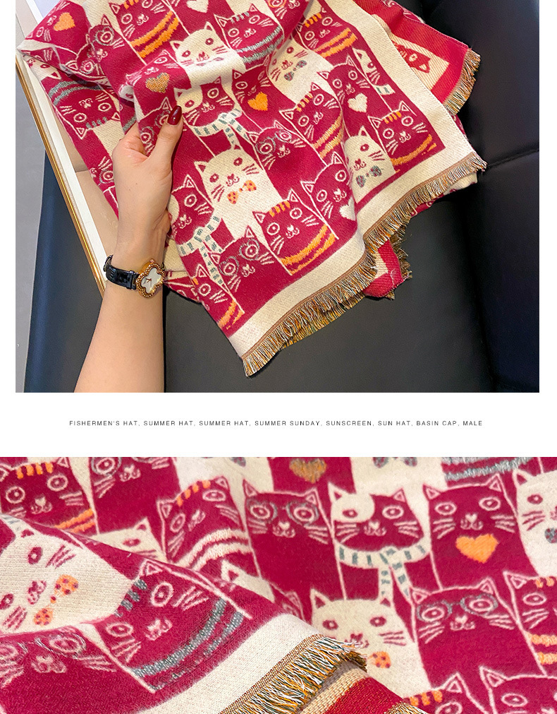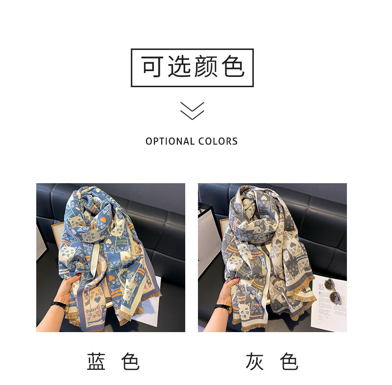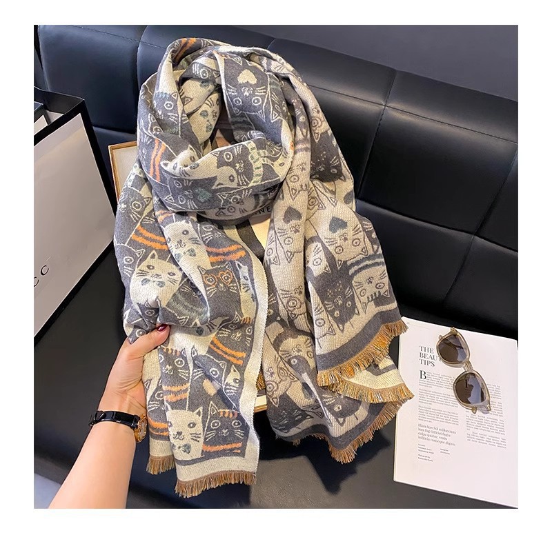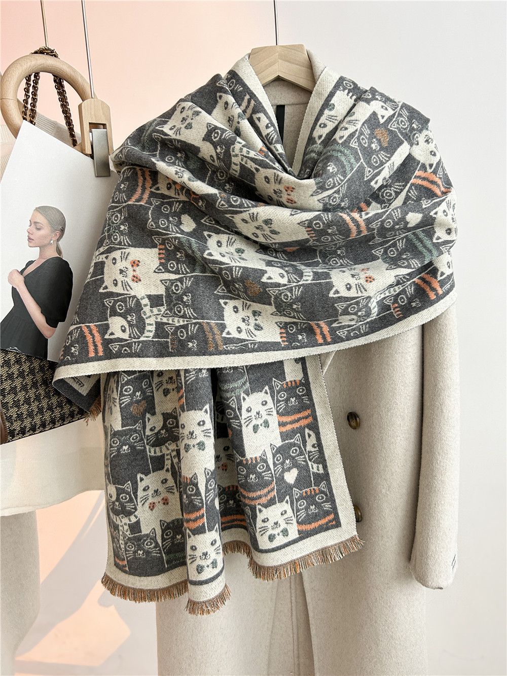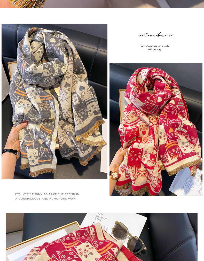 귀여운 만화 행운의 고양이 스카프 여성의 가을과 겨울 두꺼운 모조 캐시미어 목도리 선물을위한 따뜻한 올 매치 스카프