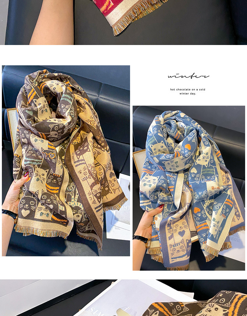 귀여운 만화 행운의 고양이 스카프 여성의 가을과 겨울 두꺼운 모조 캐시미어 목도리 선물을위한 따뜻한 올 매치 스카프스토어 가기