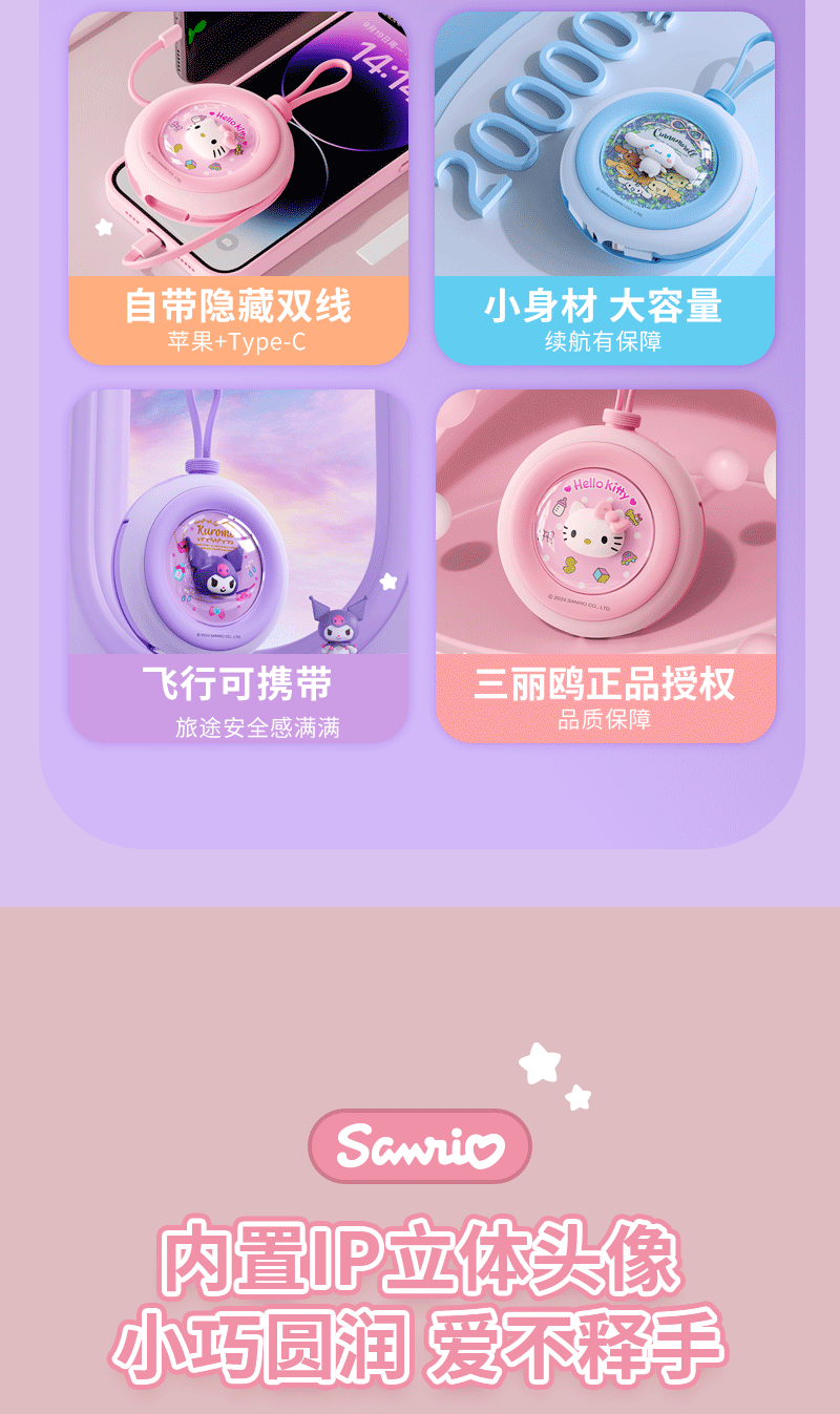• 正版授权库洛米自带双线充电宝