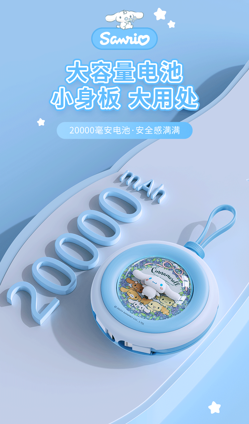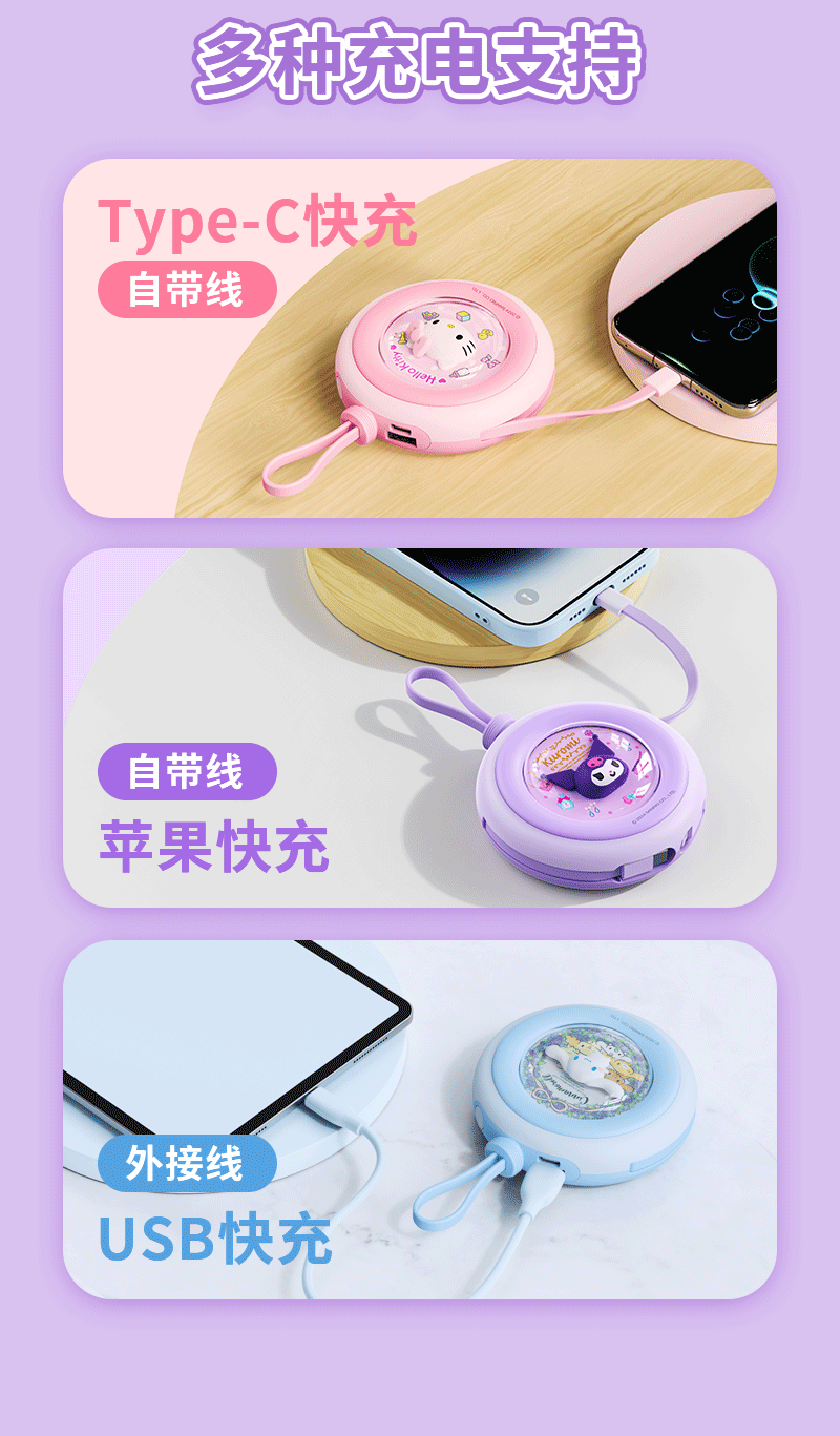 正版库洛米圆形充电宝自带双线20000毫安快充便携送女友k可爱卡通