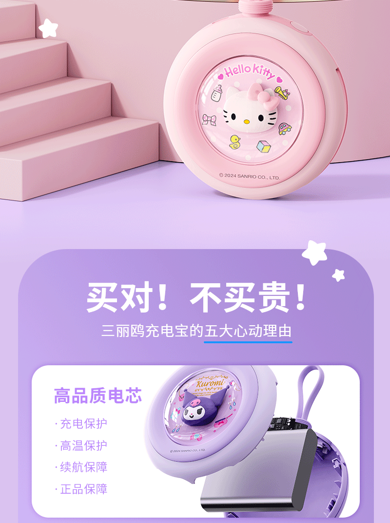 • 正版授权凯蒂猫自带双线充电宝