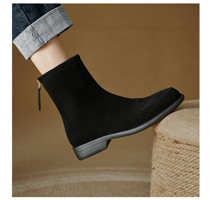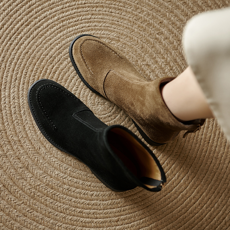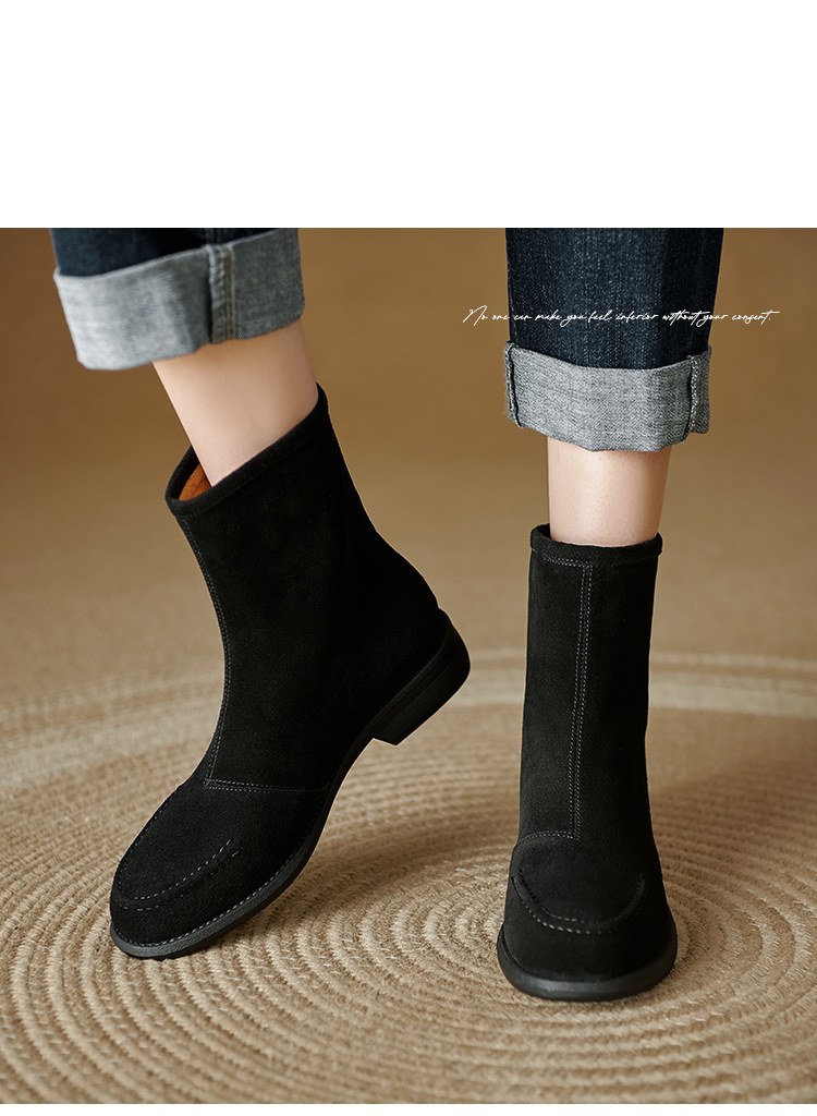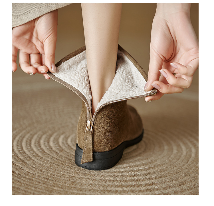 빈티지 정품 가죽 부츠 여성 기모 두꺼운 따뜻한 신발 2024 새로운 가을 및 겨울 대형 코튼 부츠 플랫 마틴 부츠스토어 가기