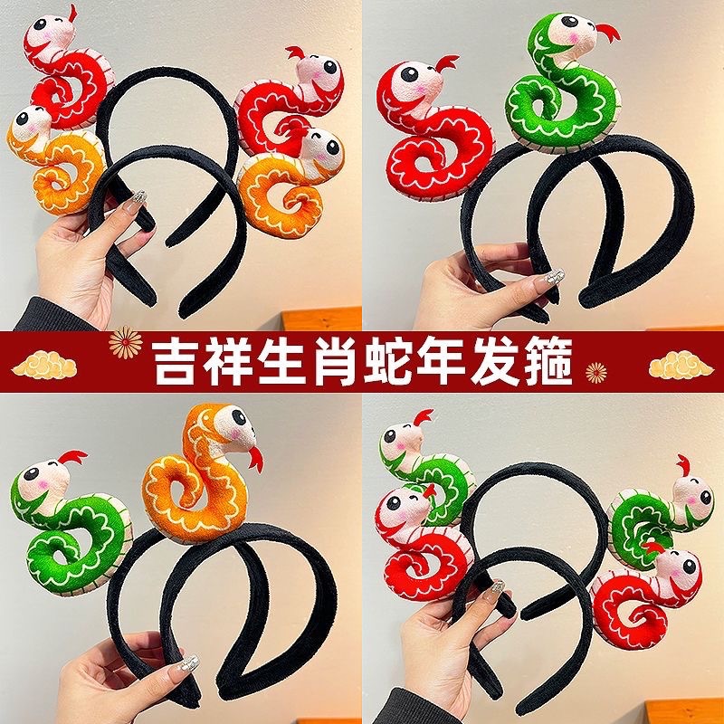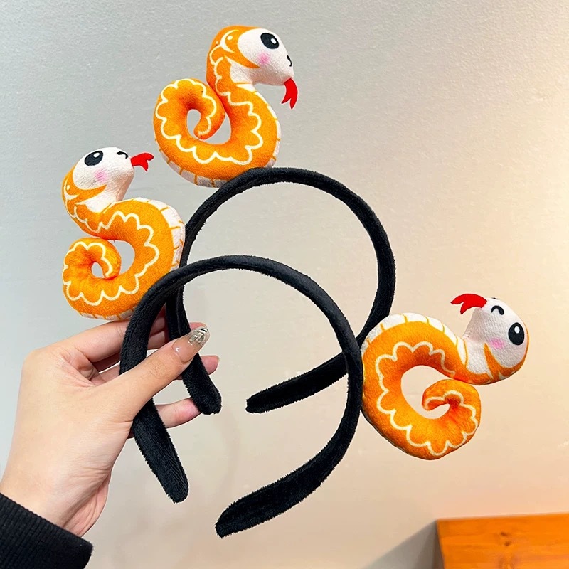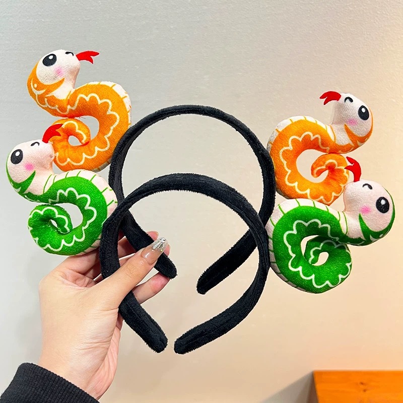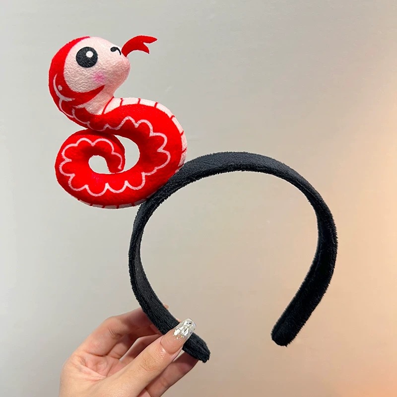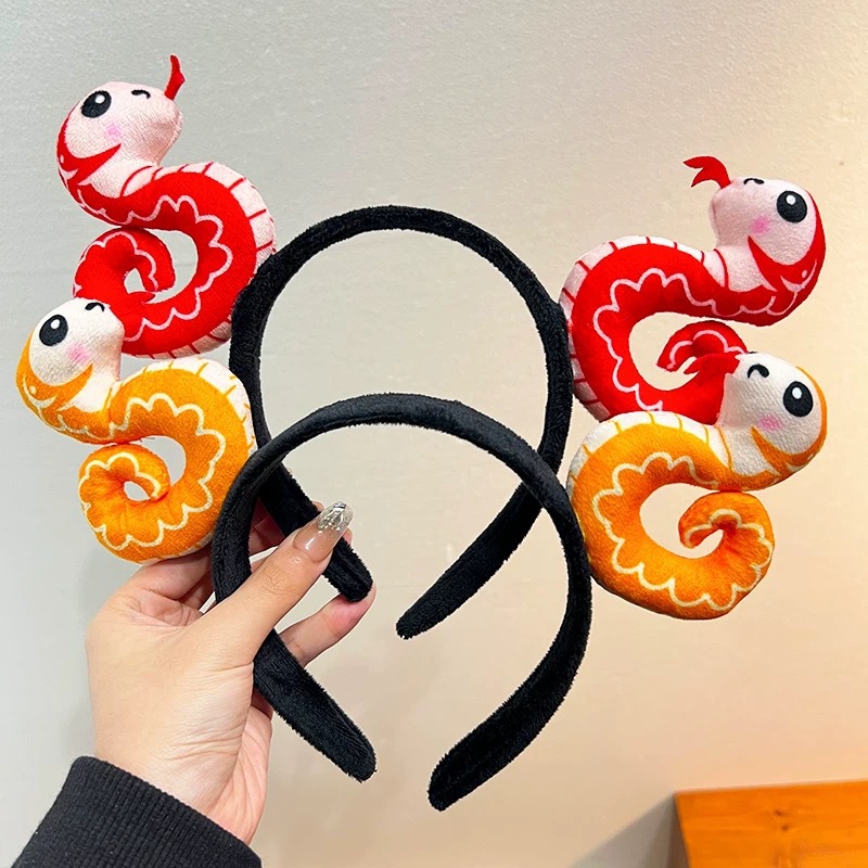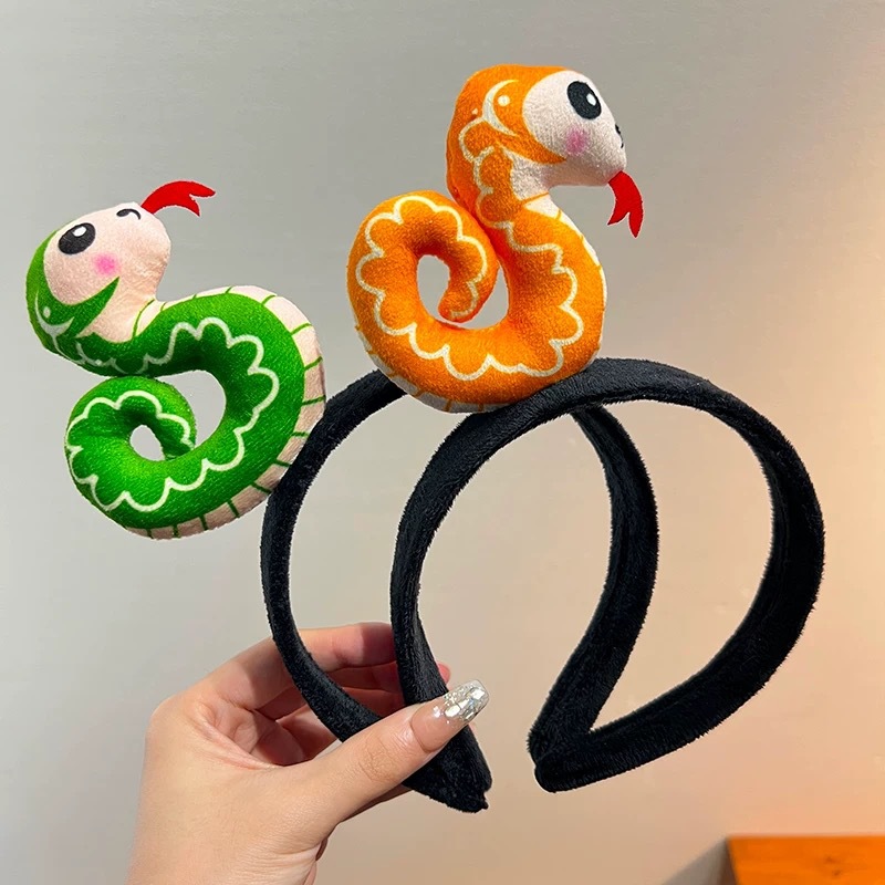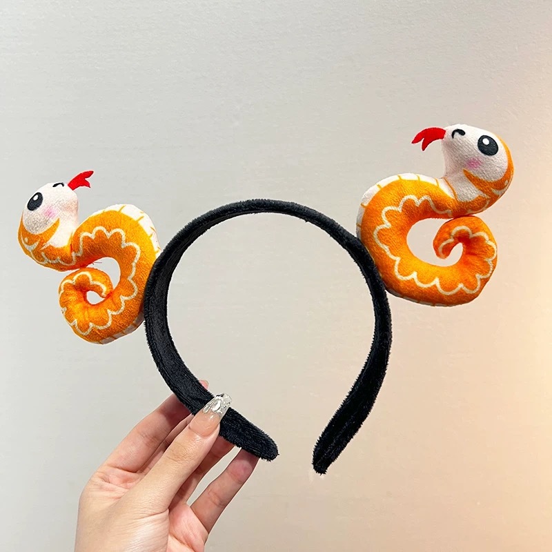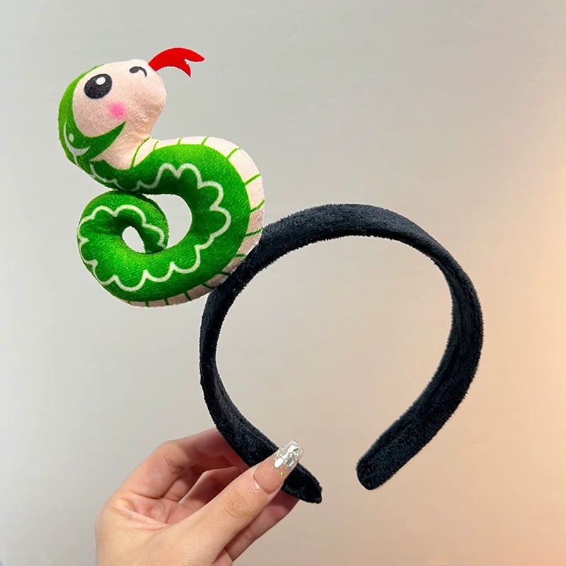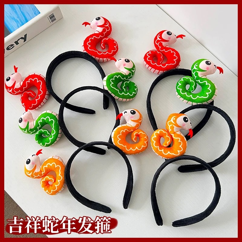 뱀 조디악 헤어 액세서리 귀여운 봉제 뱀 인형 머리띠 어린이 설날 새해 전야 공연 머리띠스토어 가기