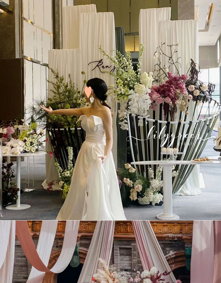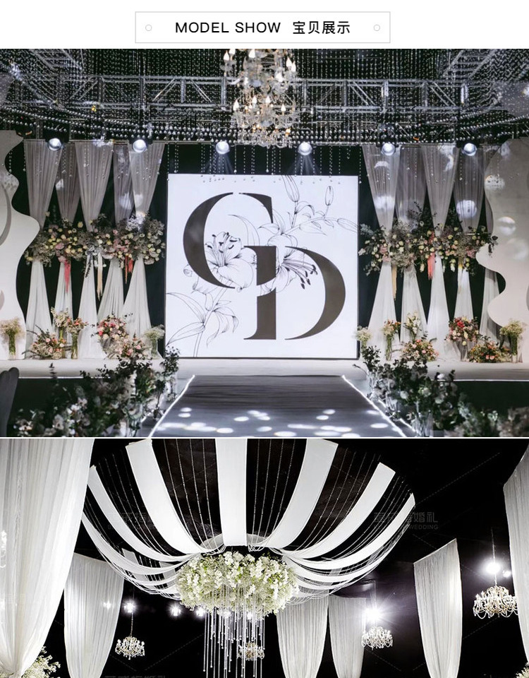 웨딩 천장 탄성 천 거즈 커튼 천 장식 중국 결혼식 강당 무대 비행기 우유 실크 천장 천 레이아웃