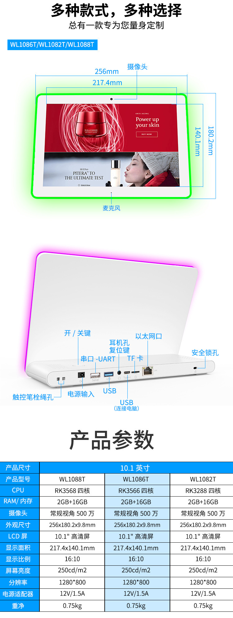 • 화이트 10.1inch WL1086T RK3566 2+16GB 안드로이드 11