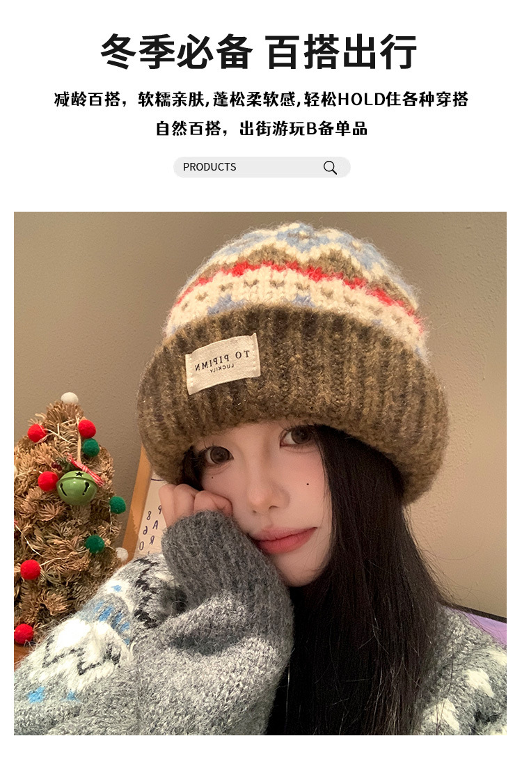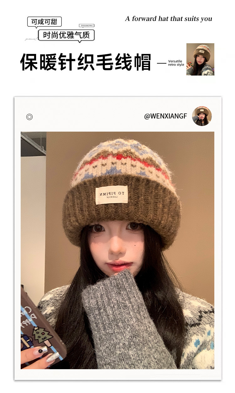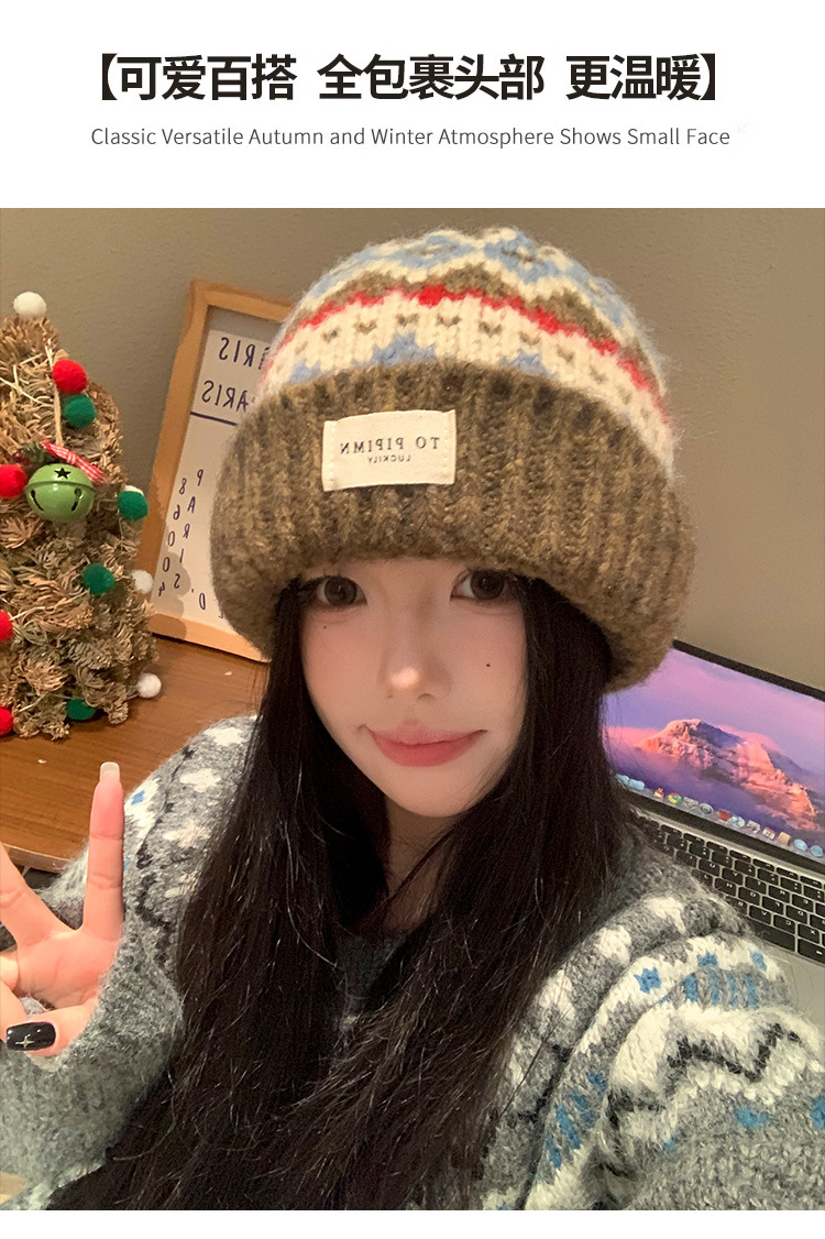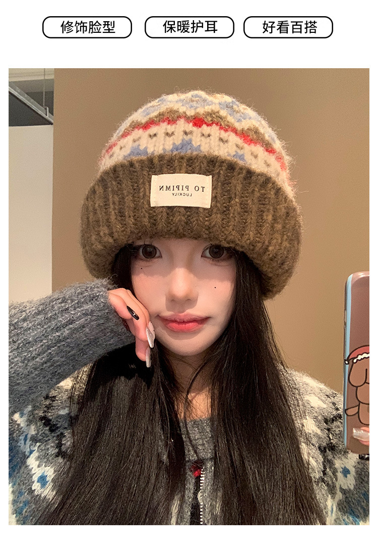 빈티지 델 아일랜드 니트 울 모자 여성의 가을과 겨울 따뜻한 올 매치 귀 보호 모자 느슨한 얼굴 모양의 작은 가방 모자스토어 가기