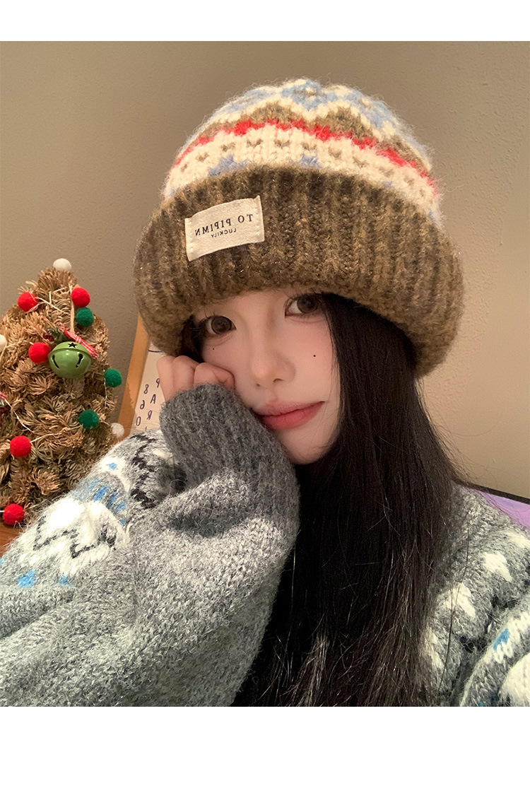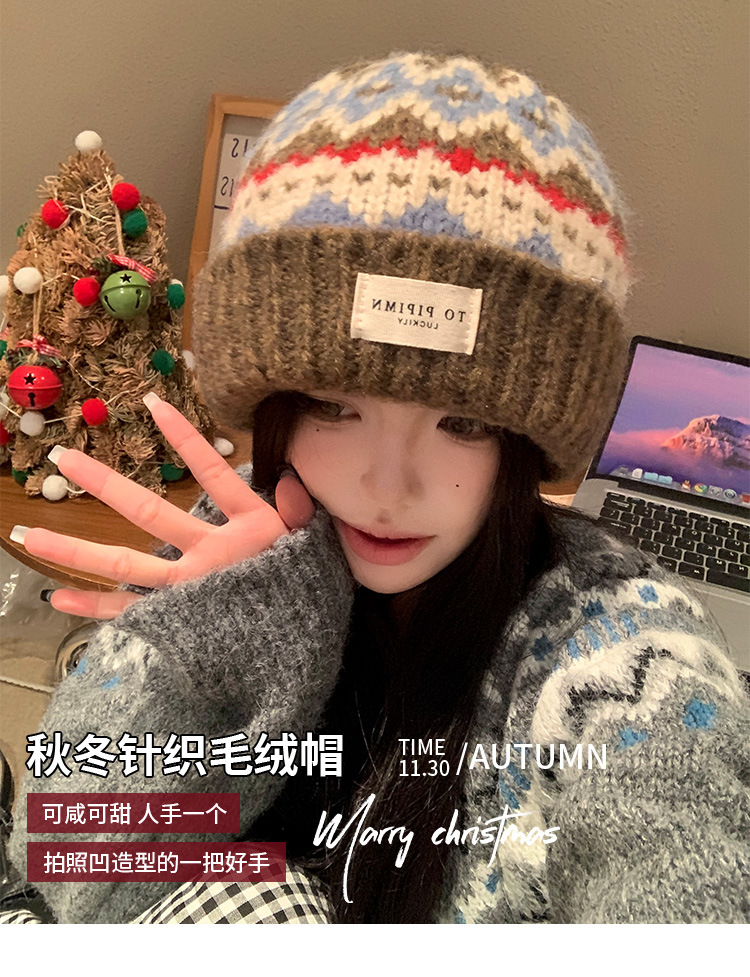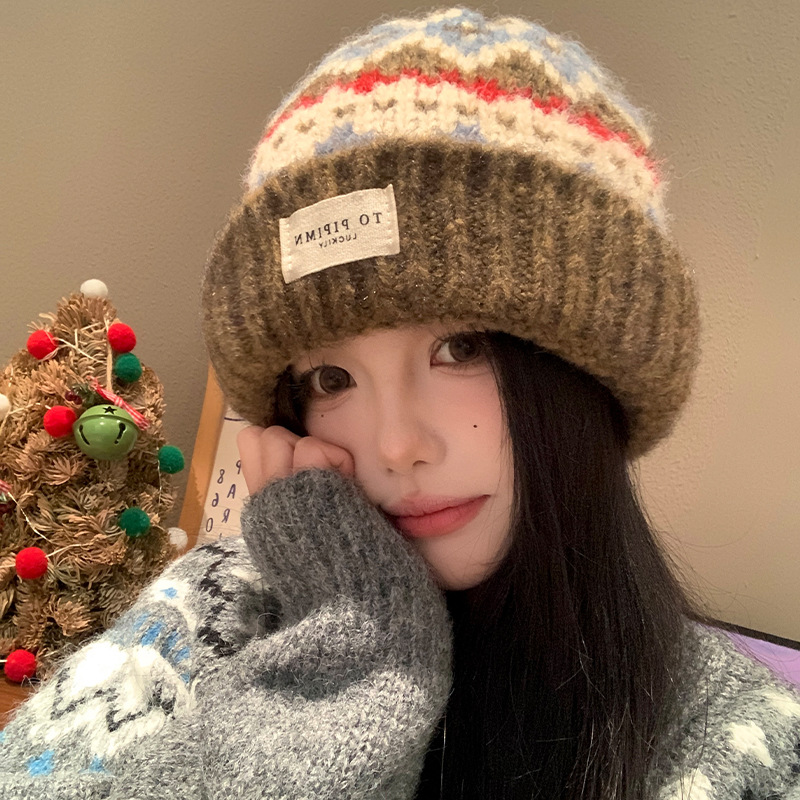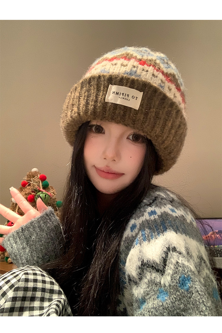 빈티지 델 아일랜드 니트 울 모자 여성의 가을과 겨울 따뜻한 올 매치 귀 보호 모자 느슨한 얼굴 모양의 작은 가방 모자스토어 가기