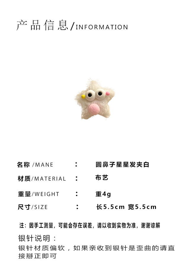부드러운 귀여운 스타 도파민 헤어핀 소녀 달콤한 웃긴 깨진 머리 방망이 봉제 BB 클립 헤어핀 헤어 액세서리