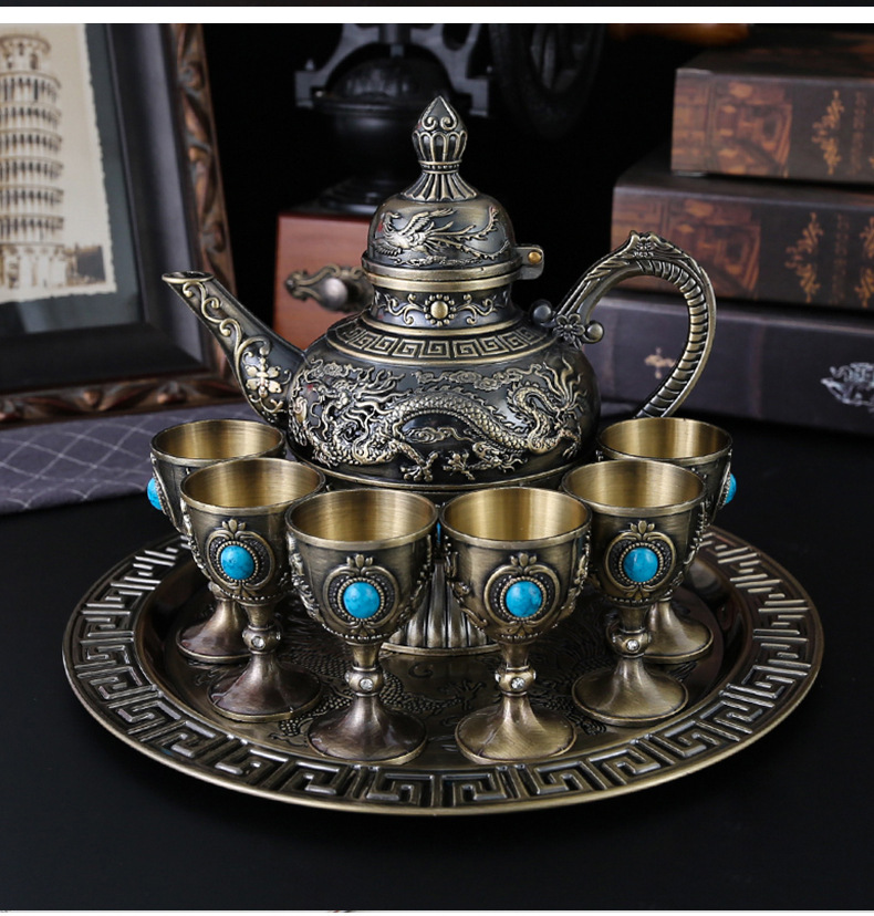 중국 스타일의 세트 대용량 와인 주전자 가정용 레트로 고급 주류 유리 창조적 인 웨딩 주류 와인 장식
