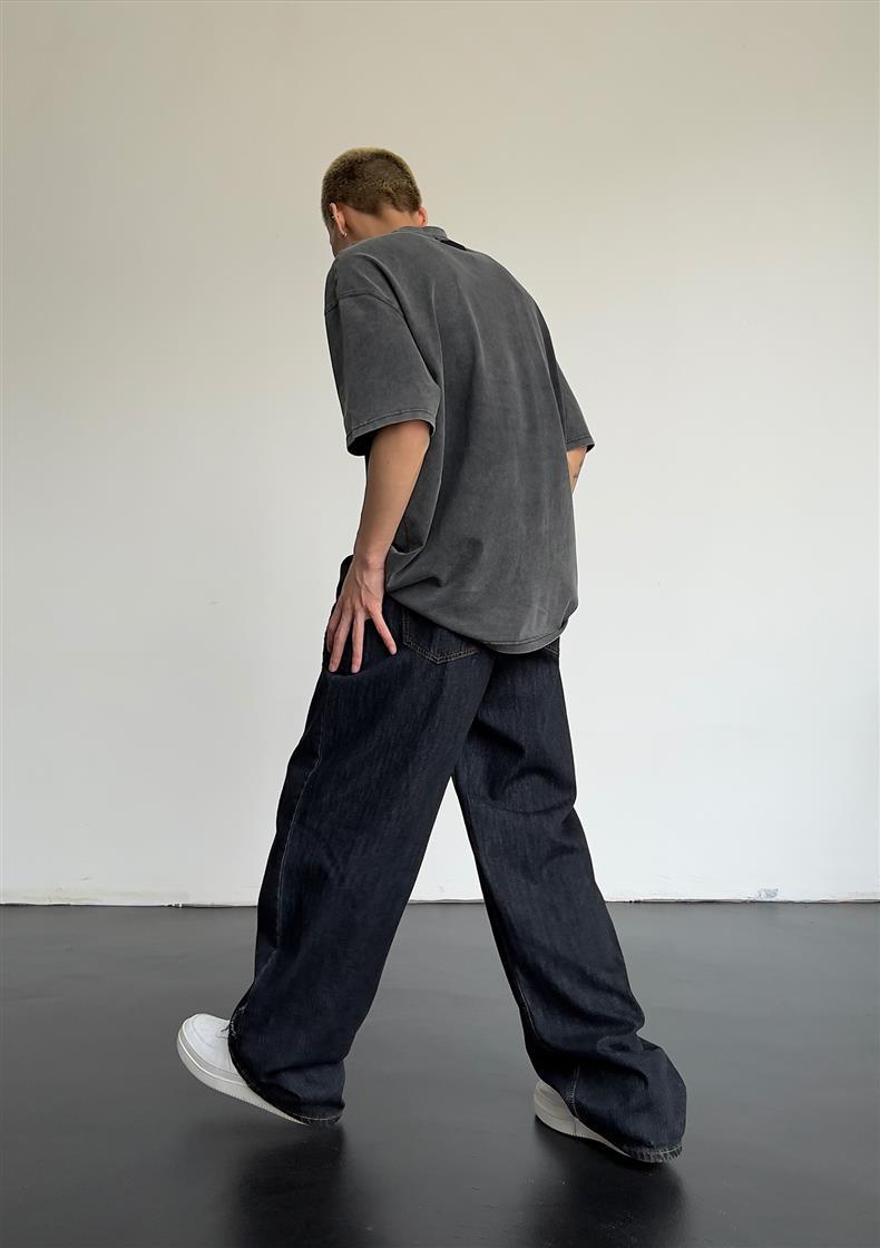 일본식 레트로 느슨한 스트레이트-다리 청바지 남자 하이 스트리트 가을 힙합 트렌디 올매치 캐주얼 와이드 레그 바지