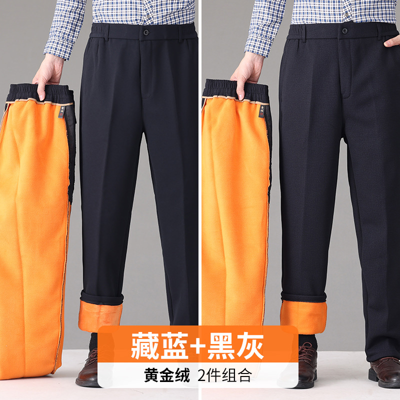 가을과 겨울 기모 중년 남성 아버지 겨울옷 50 세 이상 걸쭉한 바지 60 중년 · 노인 남성 캐주얼 바지