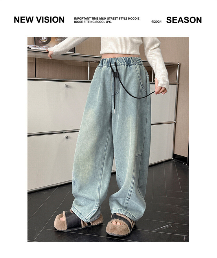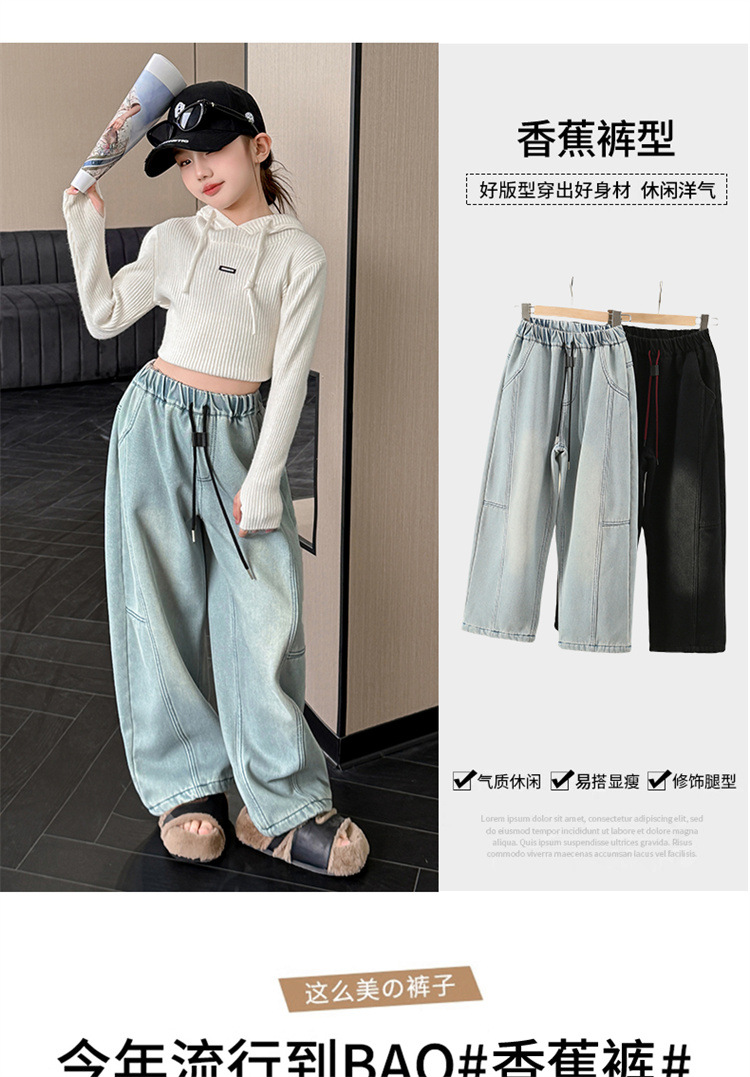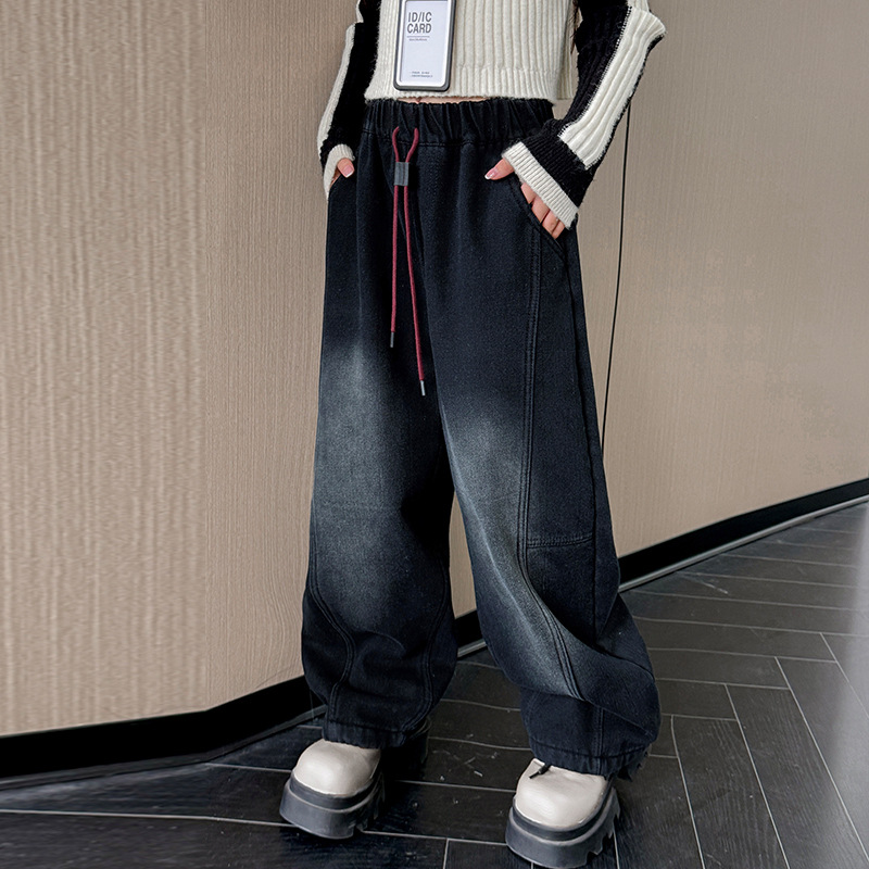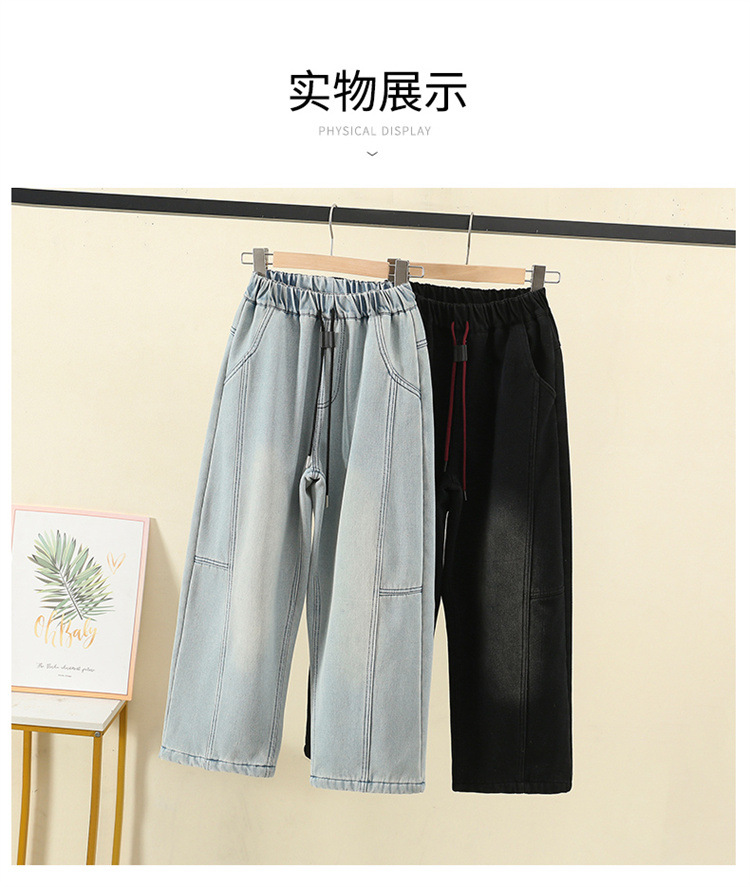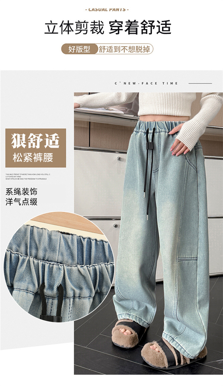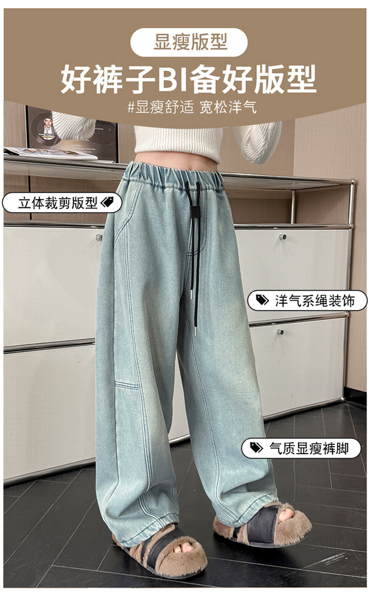 소녀의 큰 소년의 청바지 봄과 가을 2025 새로운 스타일 유행 직선 다리 넓은 다리 바지 소녀의 봄 캐주얼 바지스토어 가기
