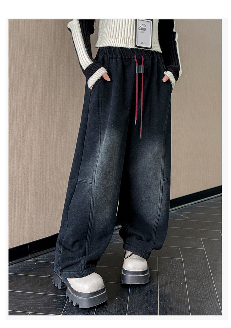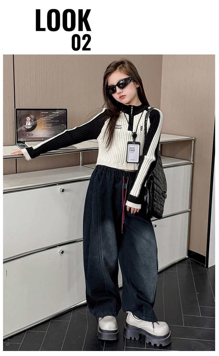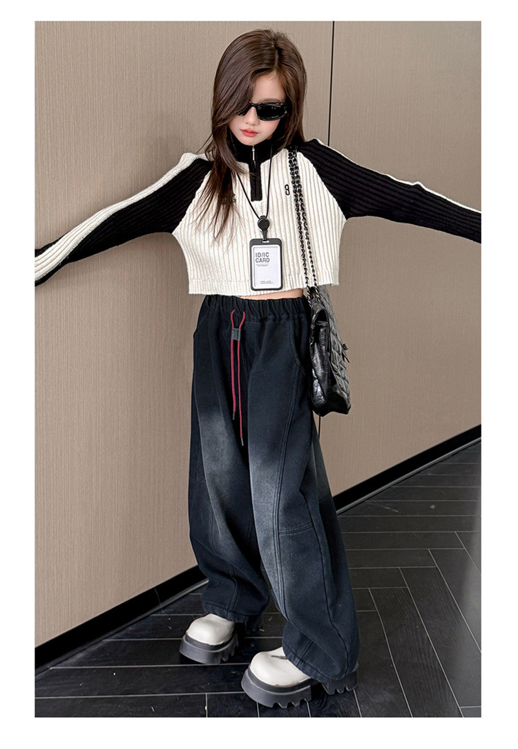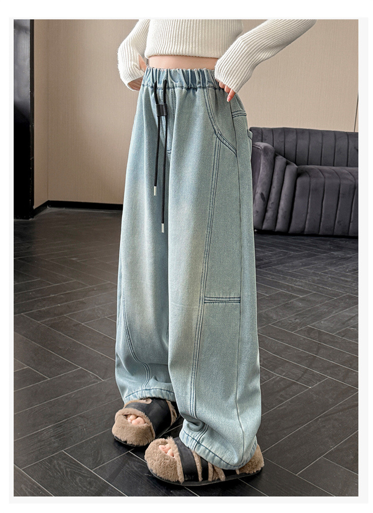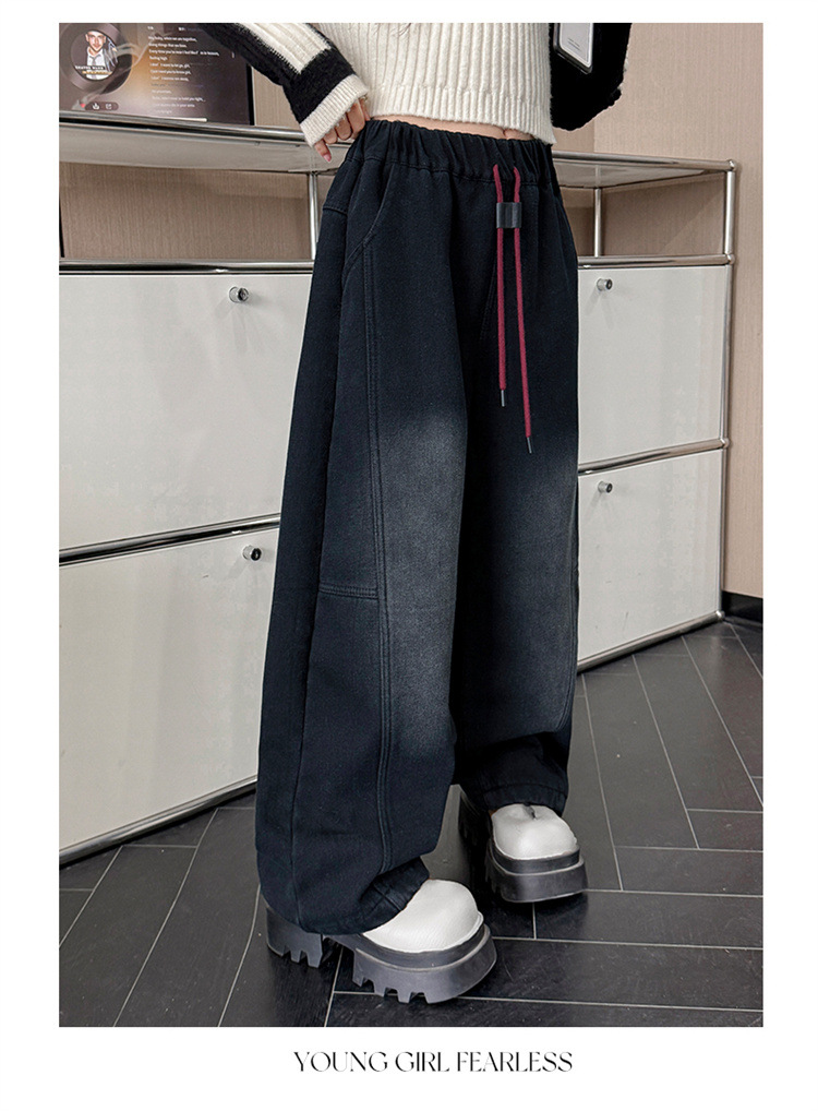 소녀의 큰 소년의 청바지 봄과 가을 2025 새로운 스타일 유행 직선 다리 넓은 다리 바지 소녀의 봄 캐주얼 바지스토어 가기