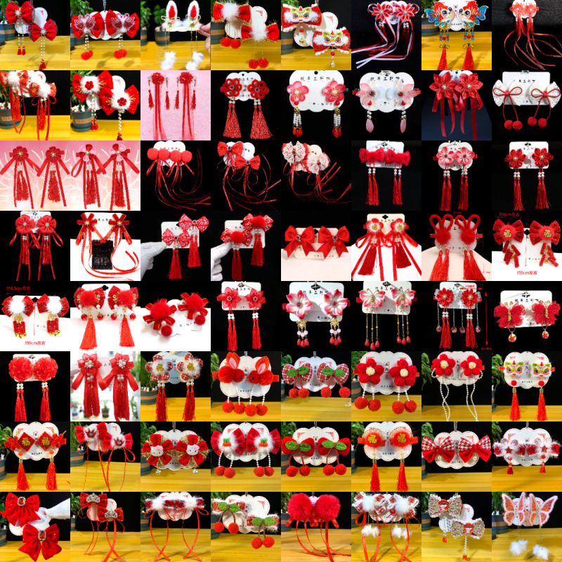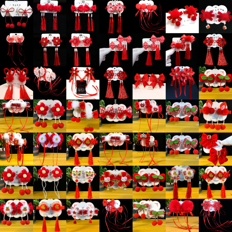 • Nn2-6위안(50쌍) 올 레드 설날 노점 여자 머리핀