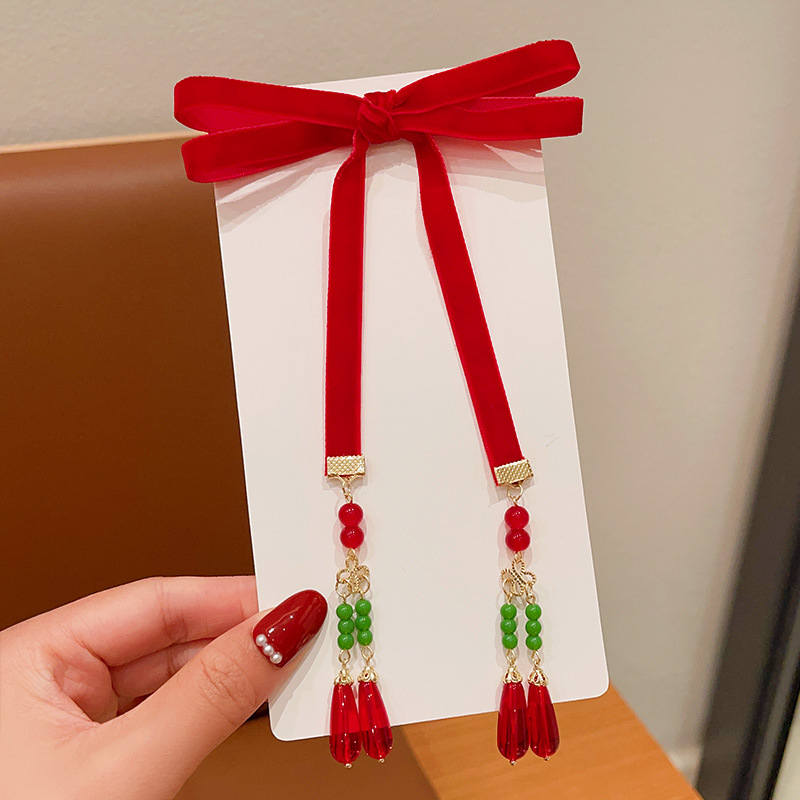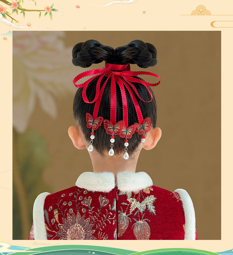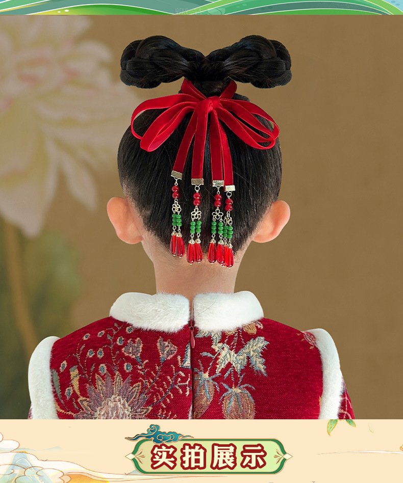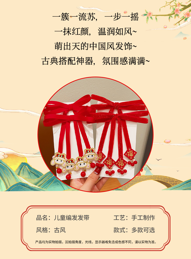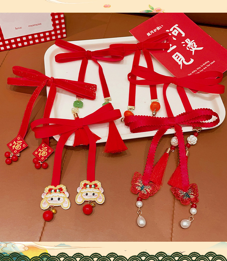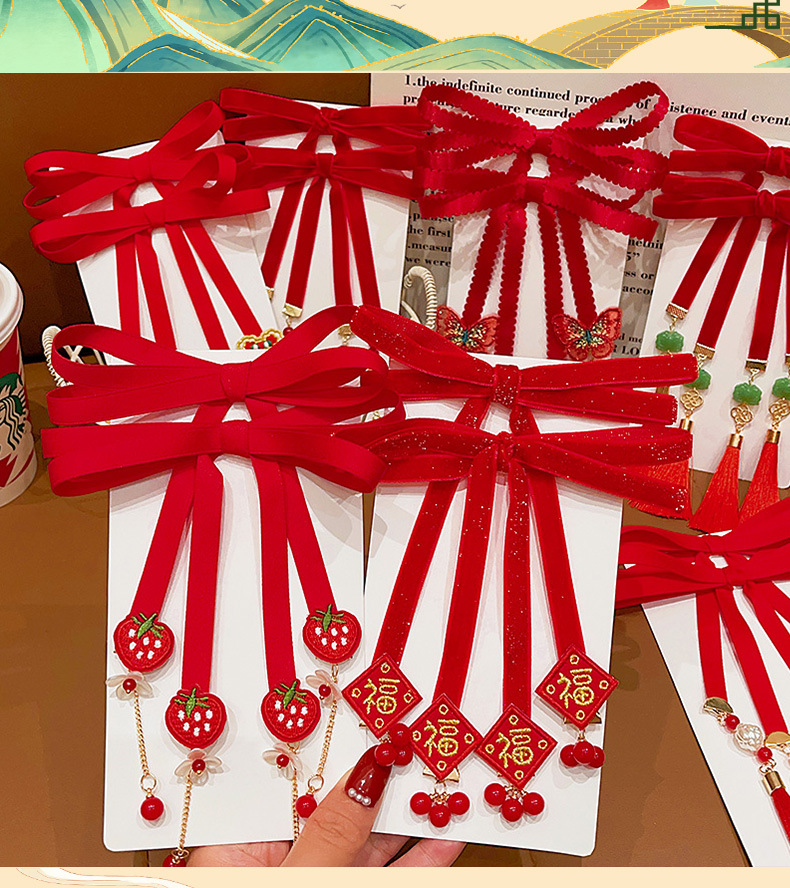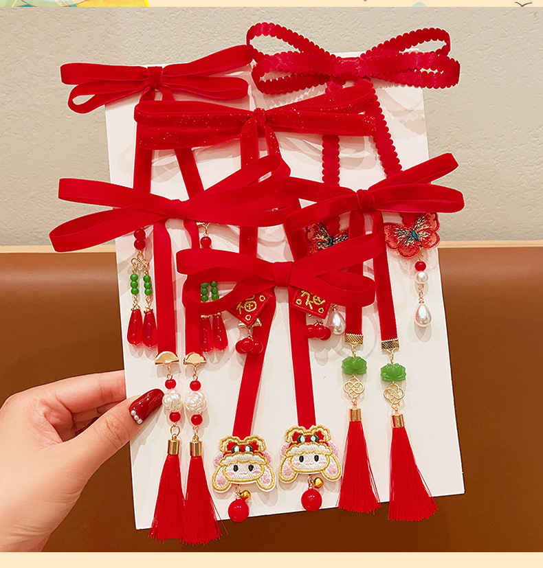 새해 골동품 활 헤어 밴드 어린이 중국 스타일 술 헤어 액세서리 원피스 소녀의 한후 빨간 리본 헤드웨어
