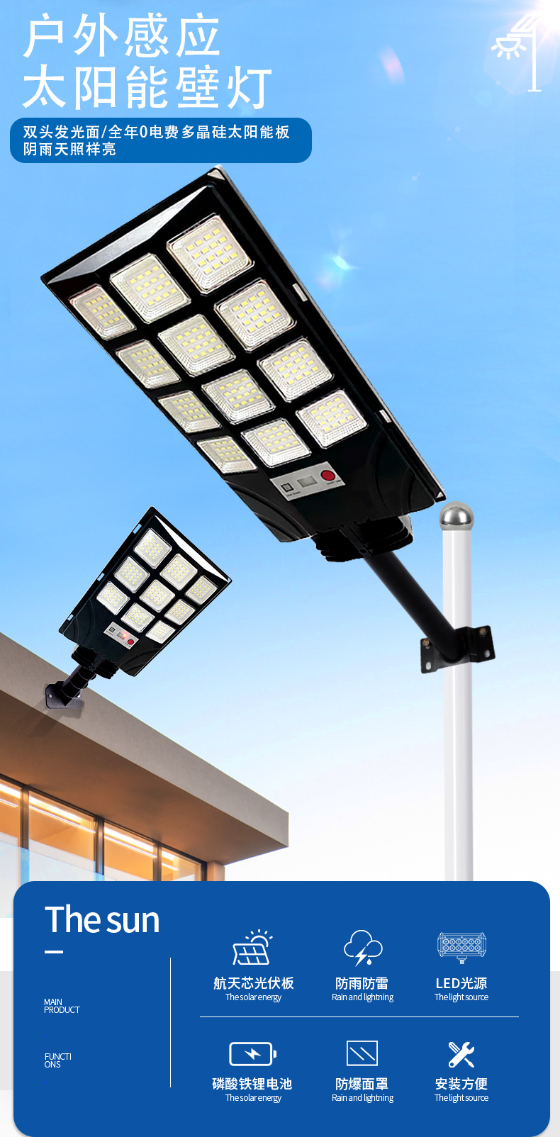 새로운 야외 태양 광 가로등 자동 감지 정원 조명 LED 홈 안뜰 벽 램프 태양 광 조명