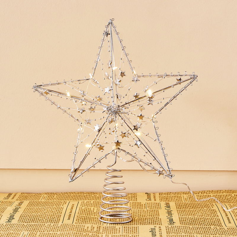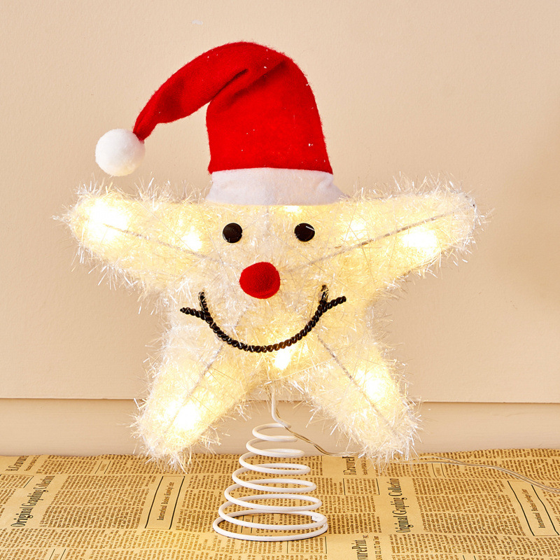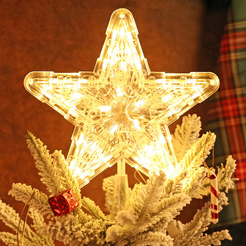 크리스마스 트리 최고 별 따뜻한 색 빛나는 조명 5 개 별 장식품 창 레이아웃 조명 크리스마스 트리 상단 장식