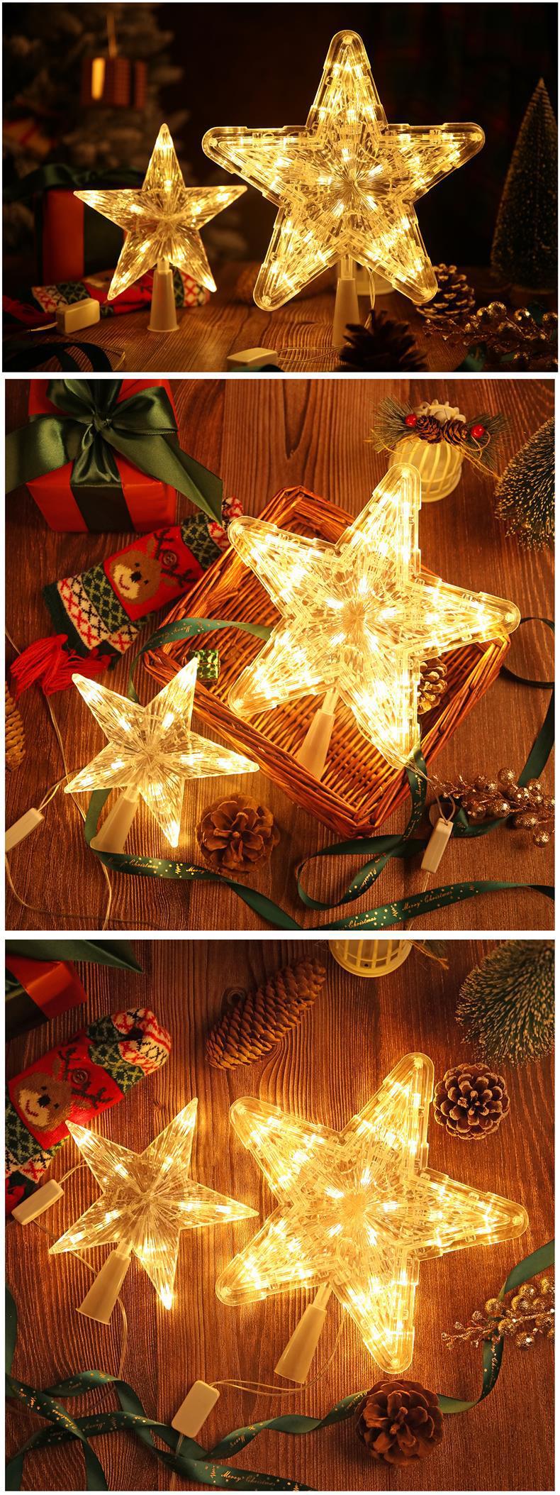 크리스마스 트리 최고 별 따뜻한 색 빛나는 조명 5 개 별 장식품 창 레이아웃 조명 크리스마스 트리 상단 장식스토어 가기