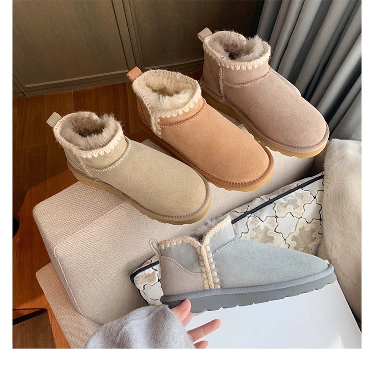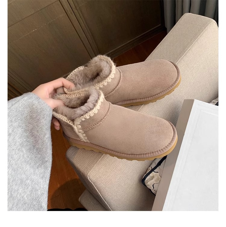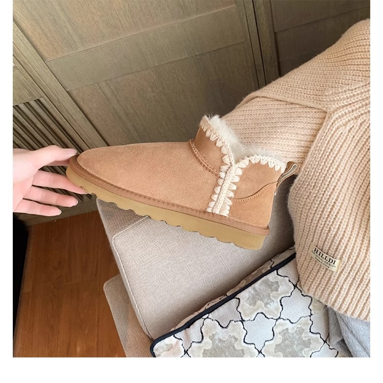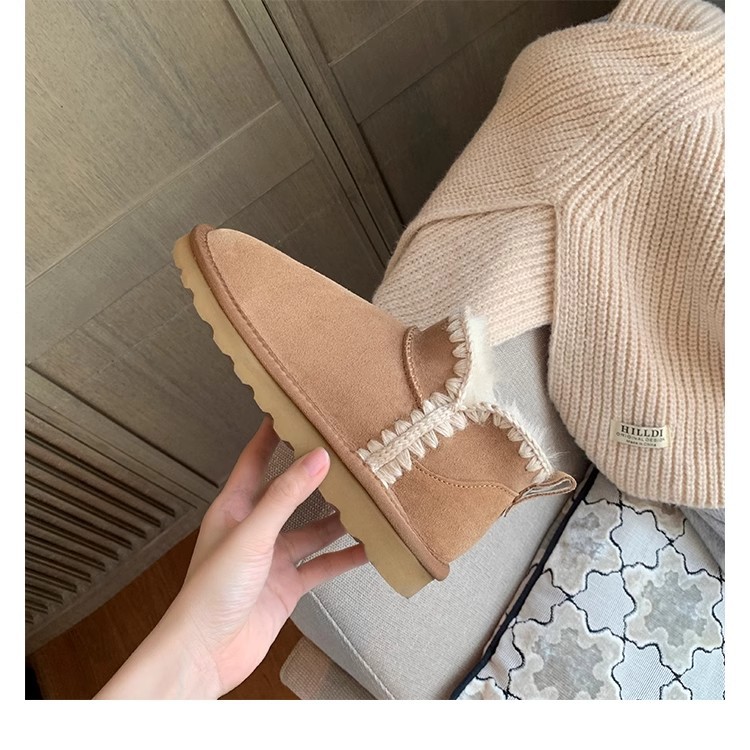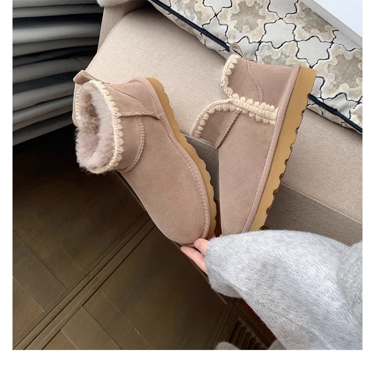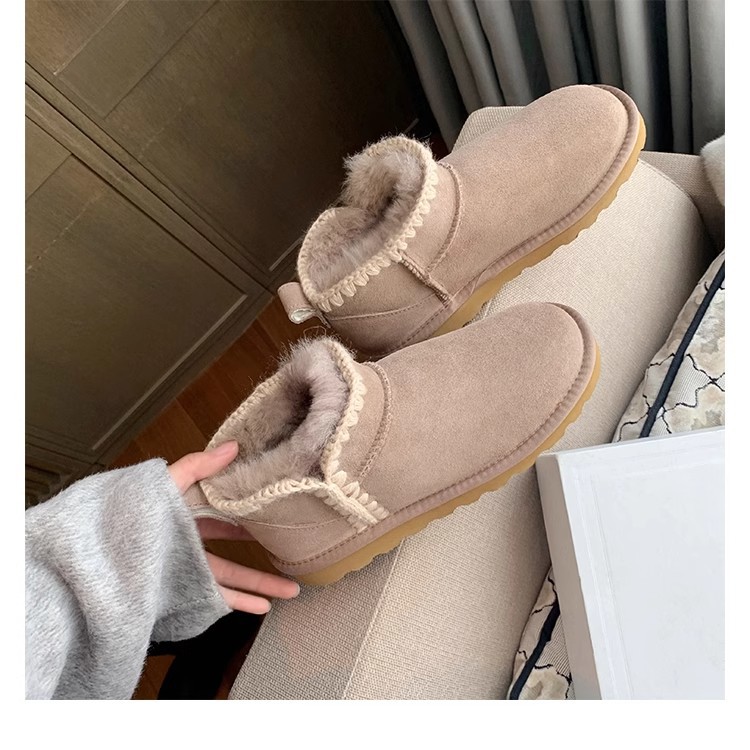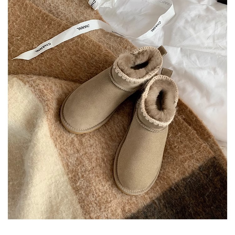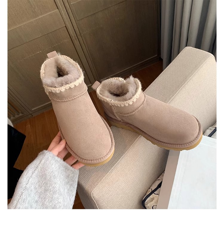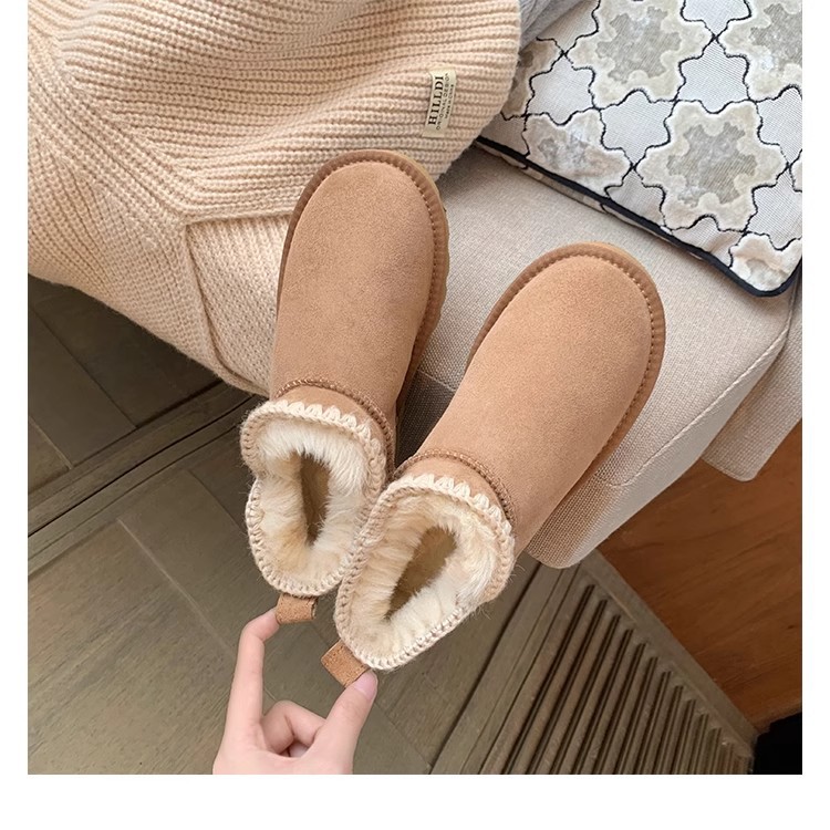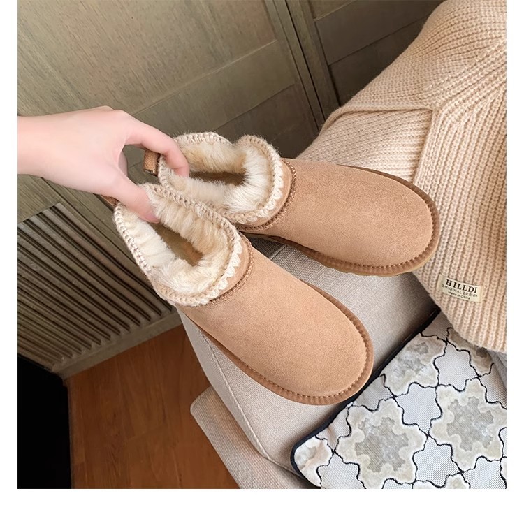 재고 소 가죽 버전 포도 엄마 두꺼운 밑창 빵 따뜻한면 신발 기모 모피 한 스노우 부츠 여성 겨울 2025스토어 가기
