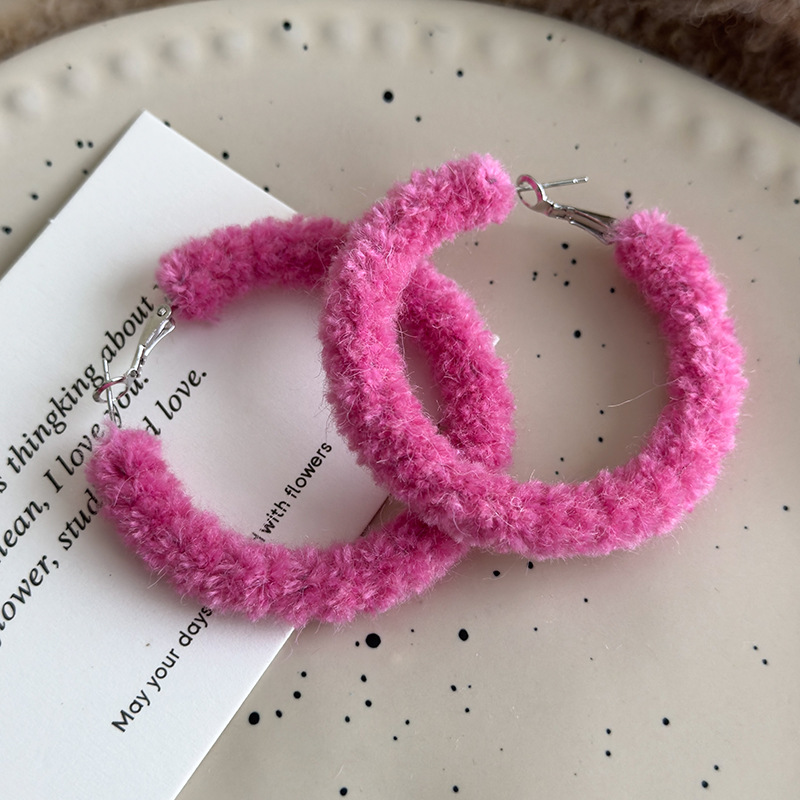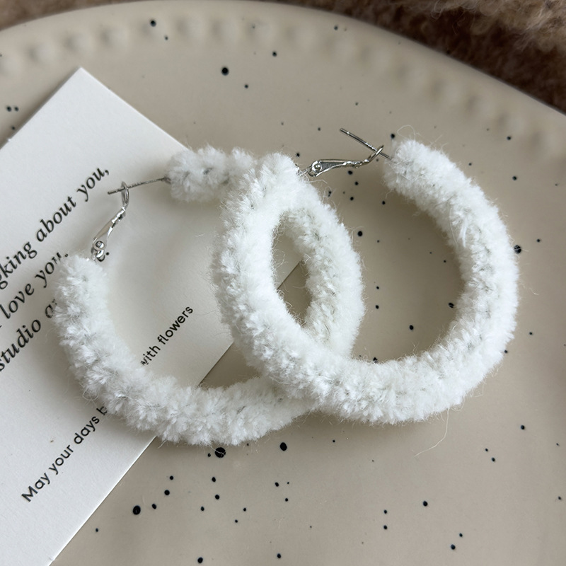 가을과 겨울 부드러운 봉제 귀걸이 여성 한국 스타일 레트로 하이 엔드 센스 화이트 로즈 핑크 귀 반지 보석 트렌디스토어 가기