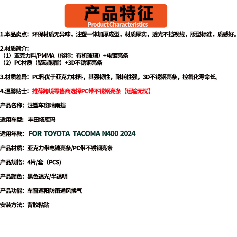 • Toyota Tacoma 2024+ Window Visors 용 Rain Shield Sun Visor 용 Toyota Tacoma