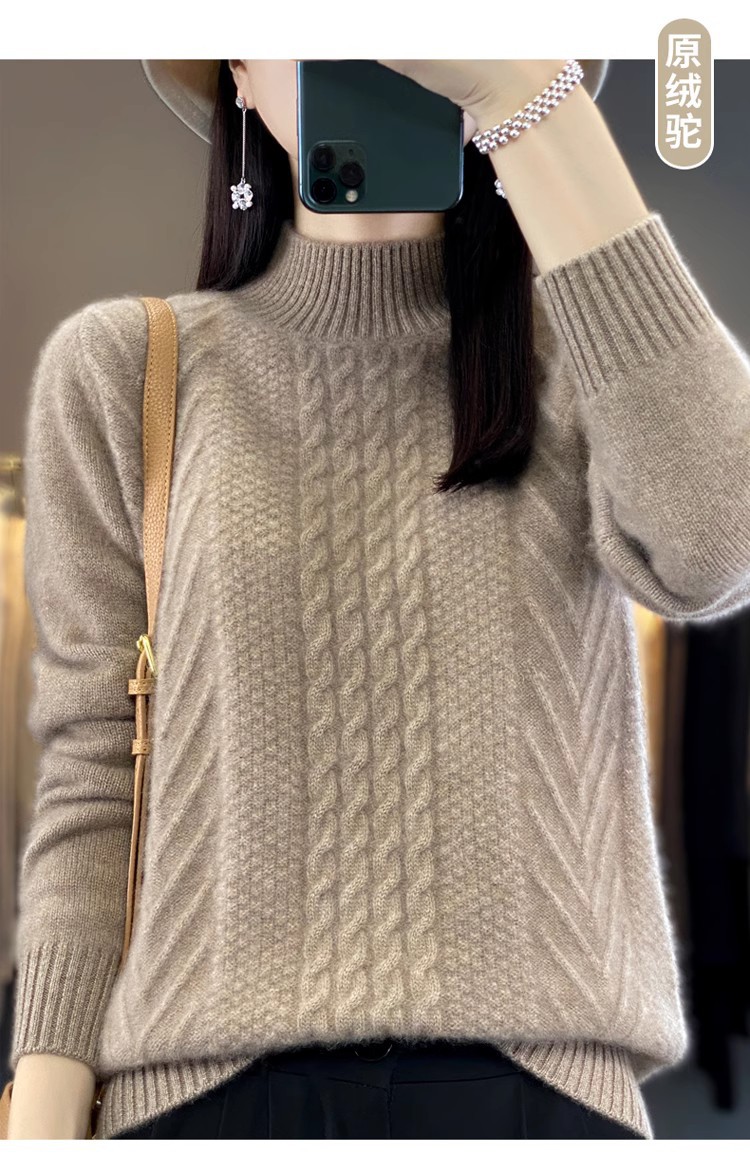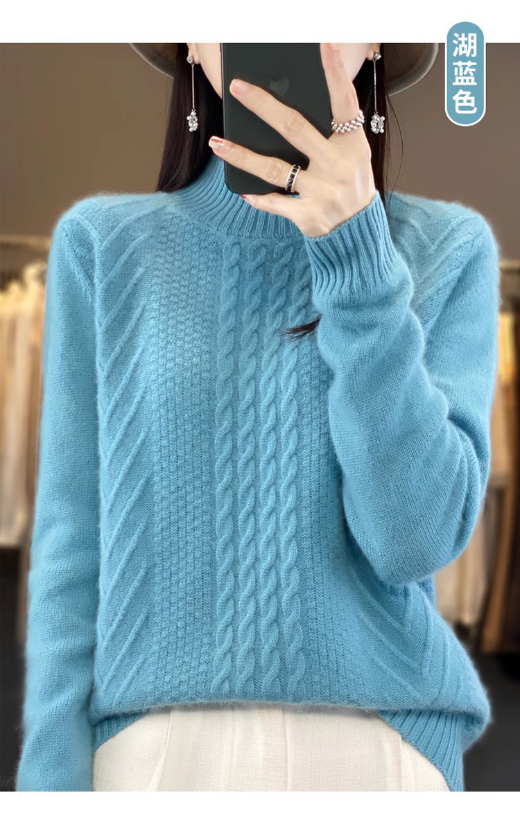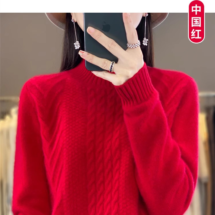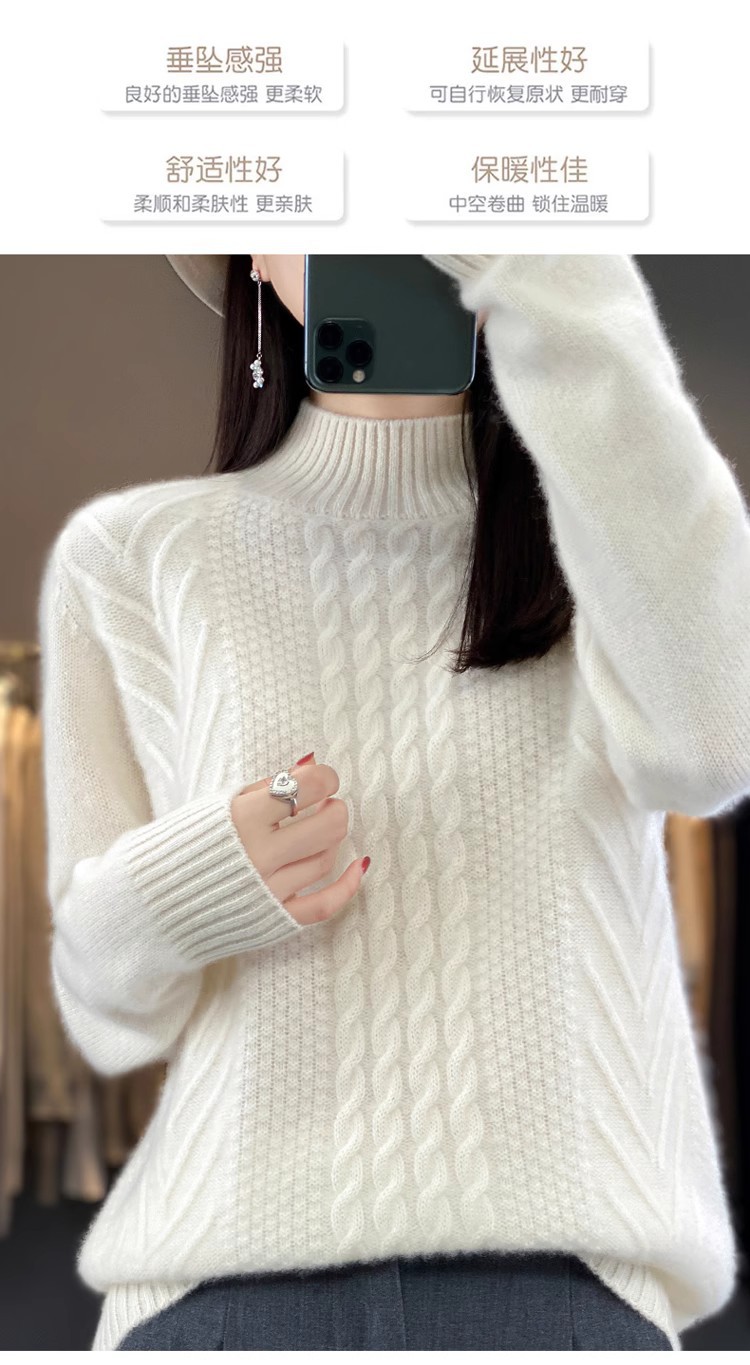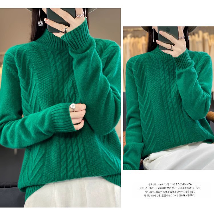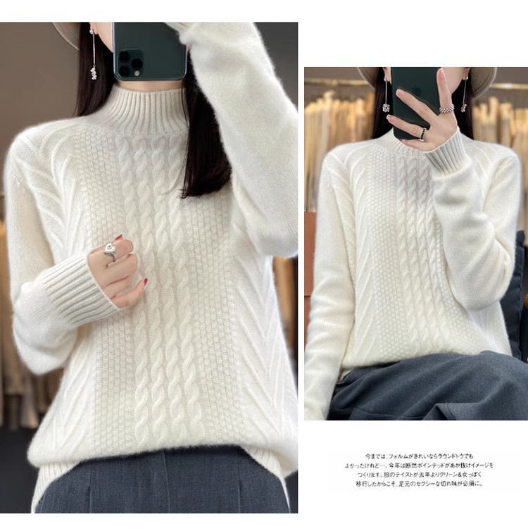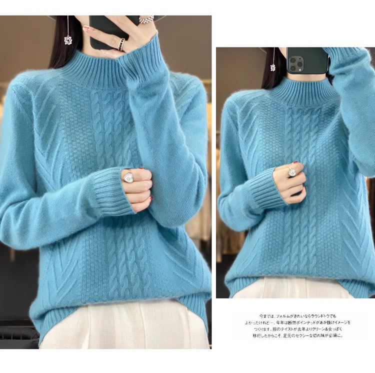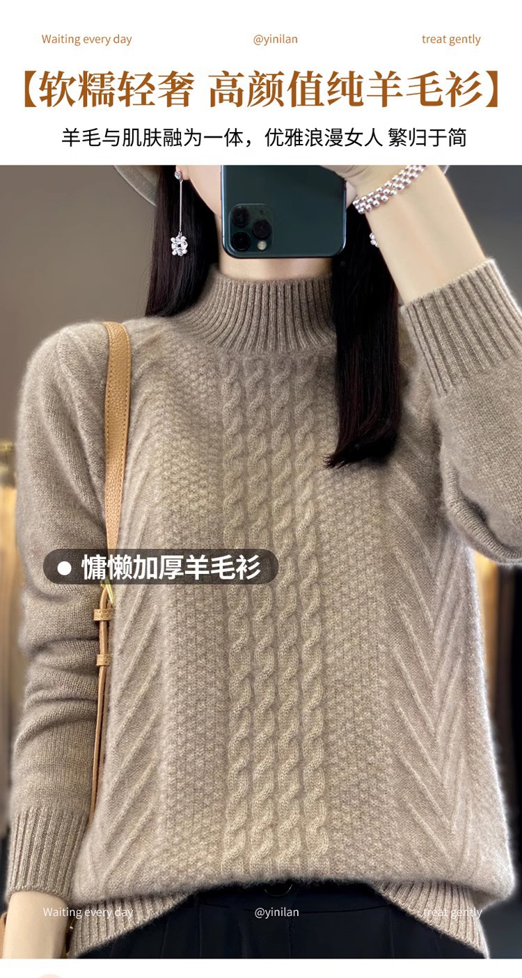 100 순수 울 스웨터 여성 하프 터틀넥 가을과 겨울 새로운 트위스트 니트 플러스 사이즈 두꺼운 울 스웨터베이스 니트 스웨터스토어 가기