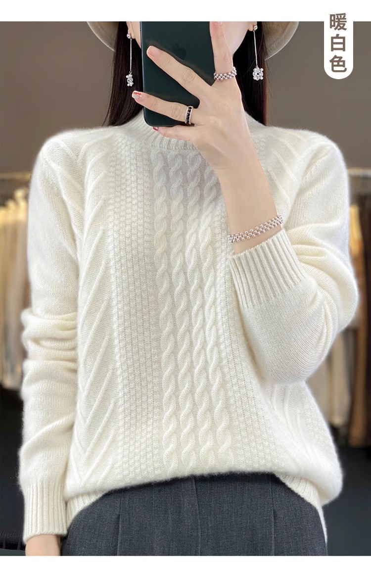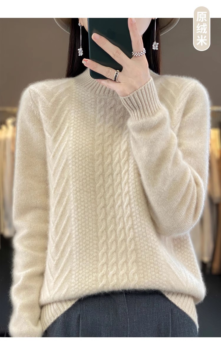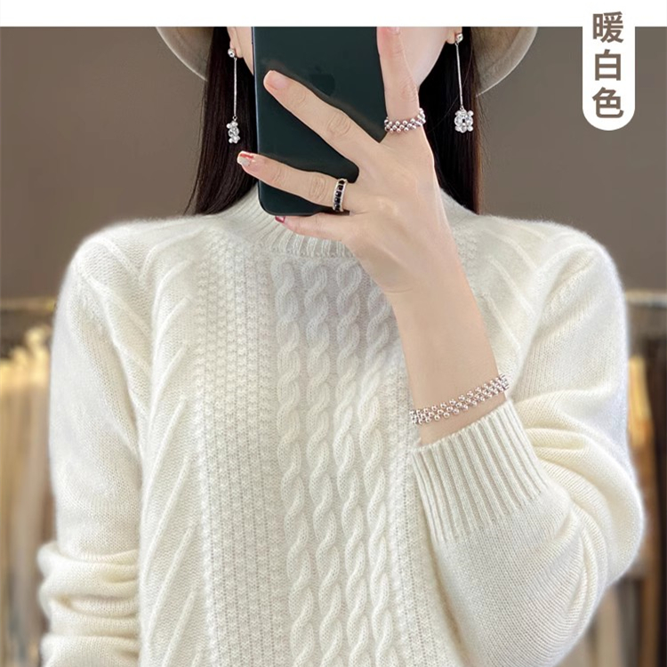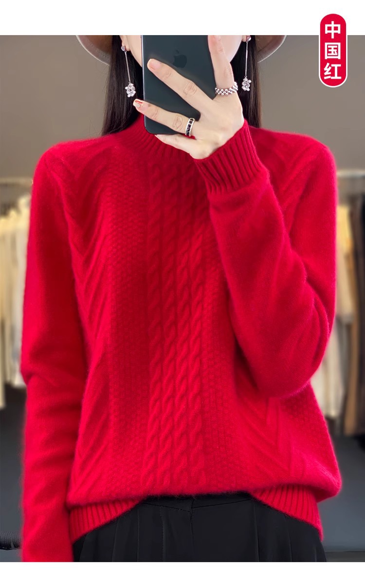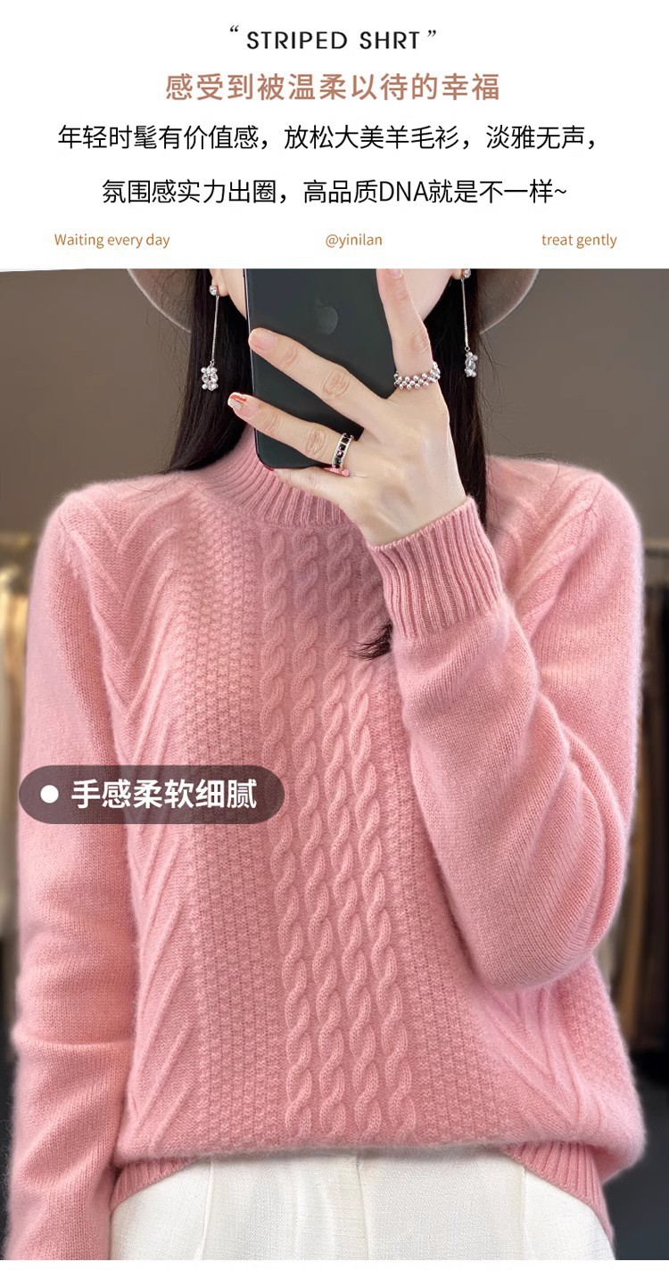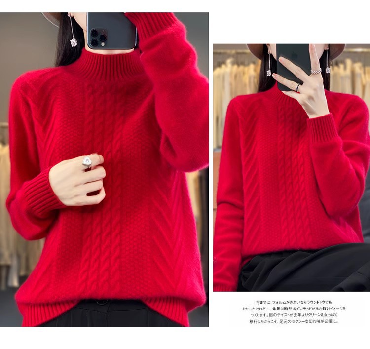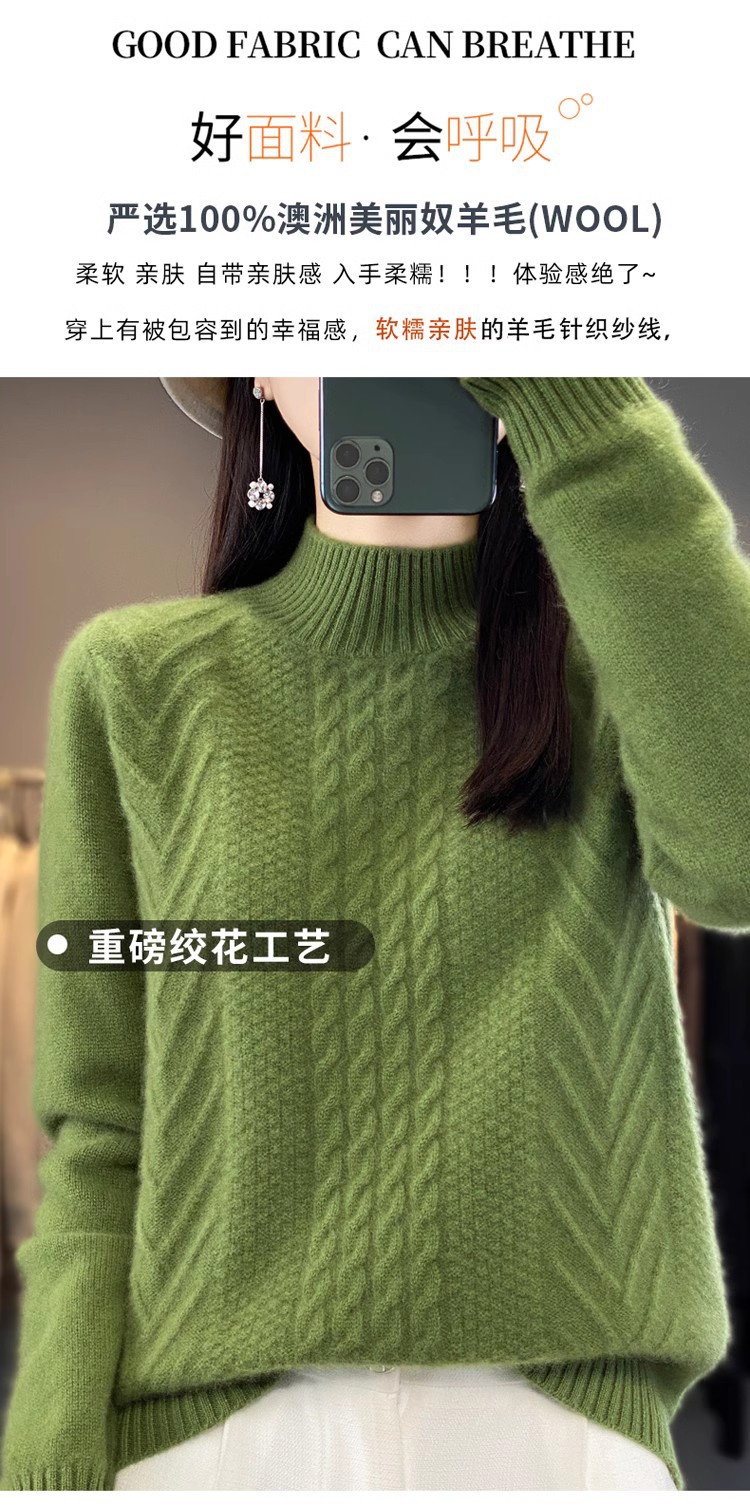 100 순수 울 스웨터 여성 하프 터틀넥 가을과 겨울 새로운 트위스트 니트 플러스 사이즈 두꺼운 울 스웨터베이스 니트 스웨터스토어 가기