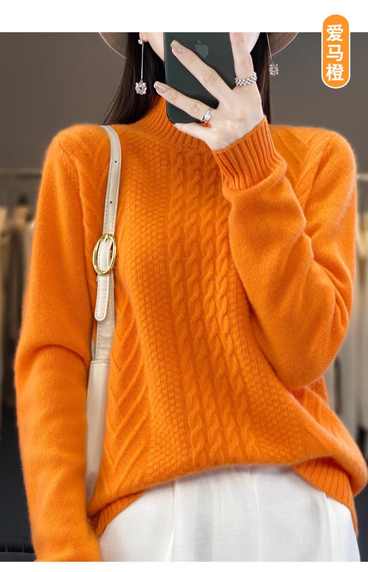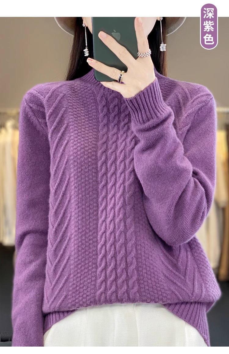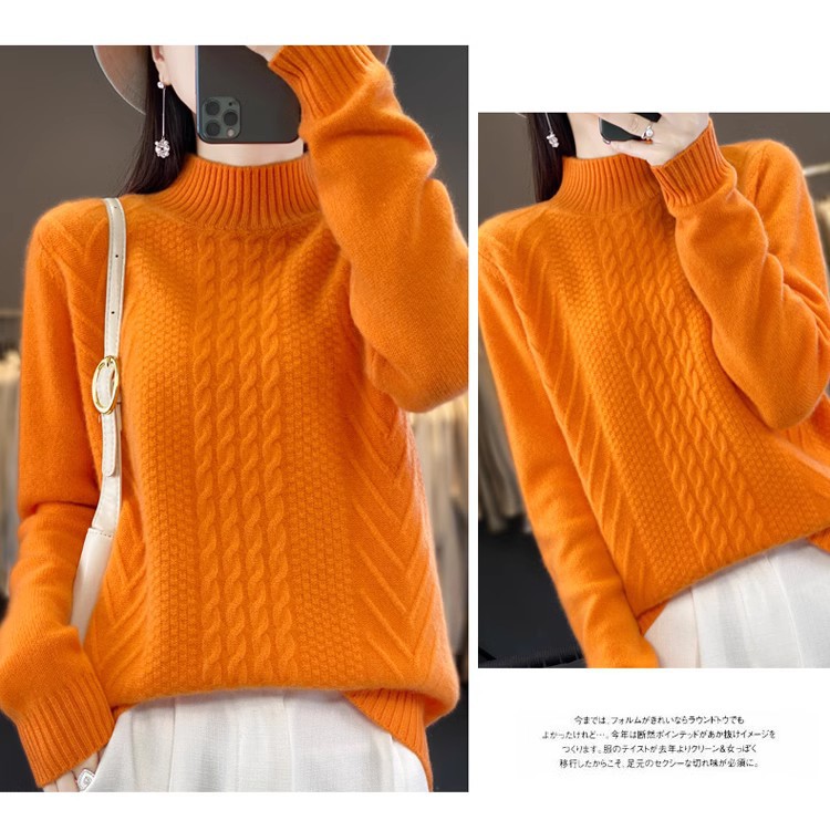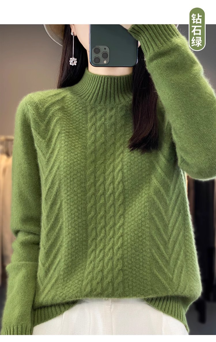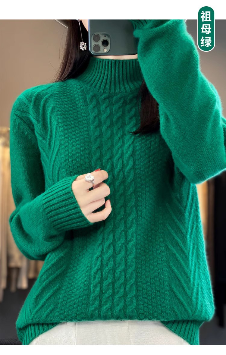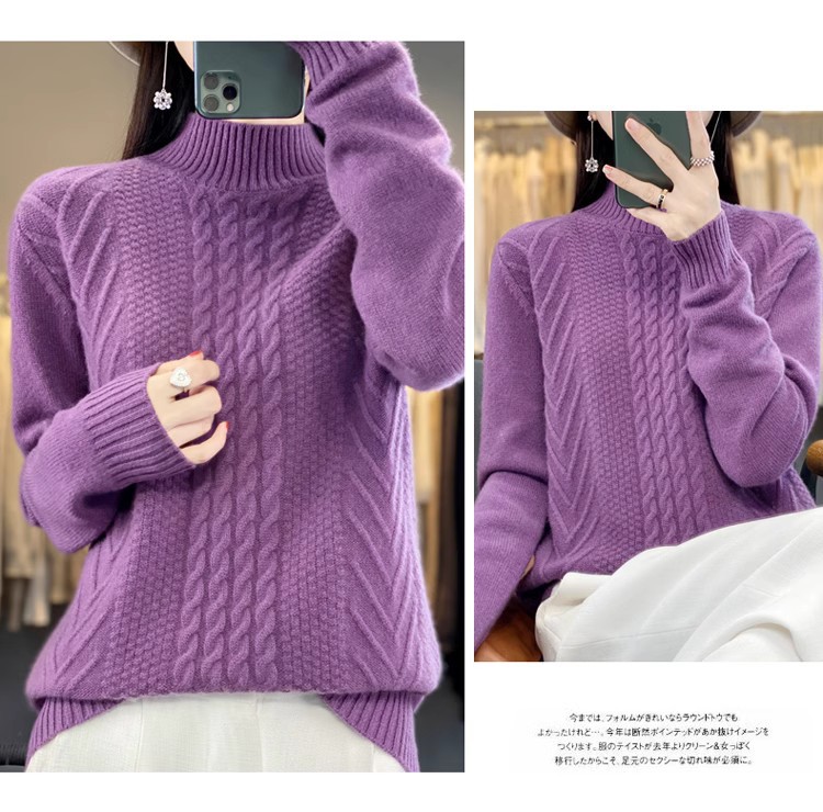 100 순수 울 스웨터 여성 하프 터틀넥 가을과 겨울 새로운 트위스트 니트 플러스 사이즈 두꺼운 울 스웨터베이스 니트 스웨터