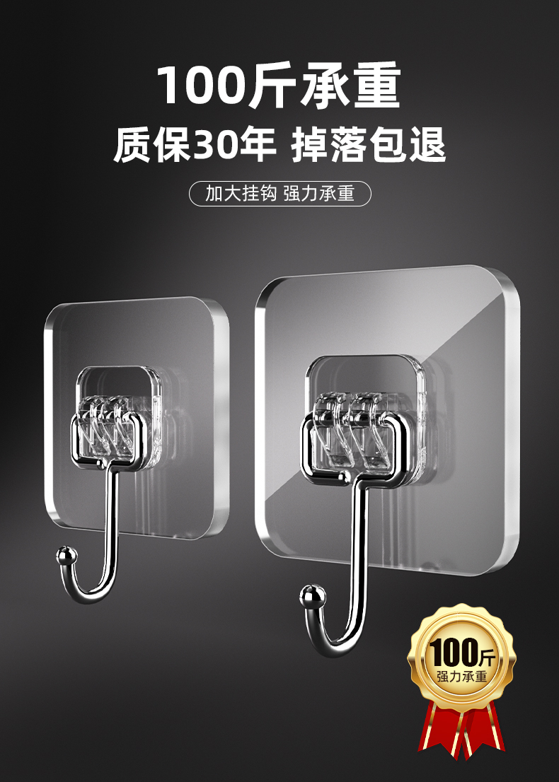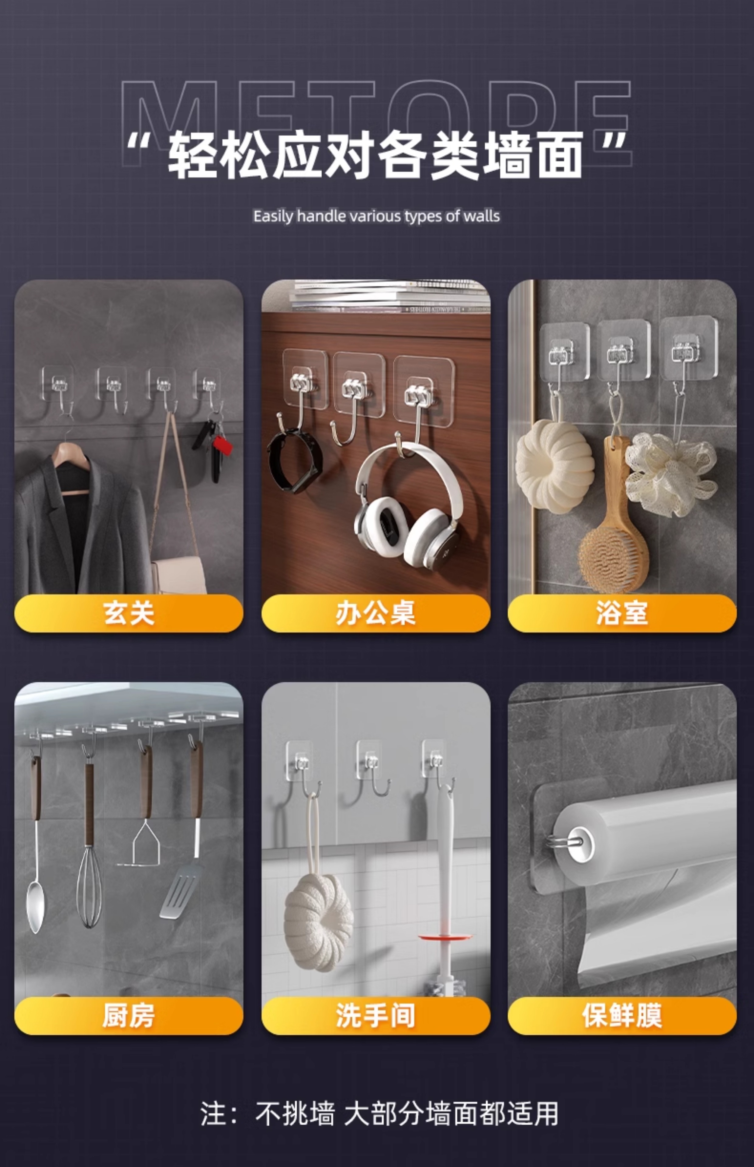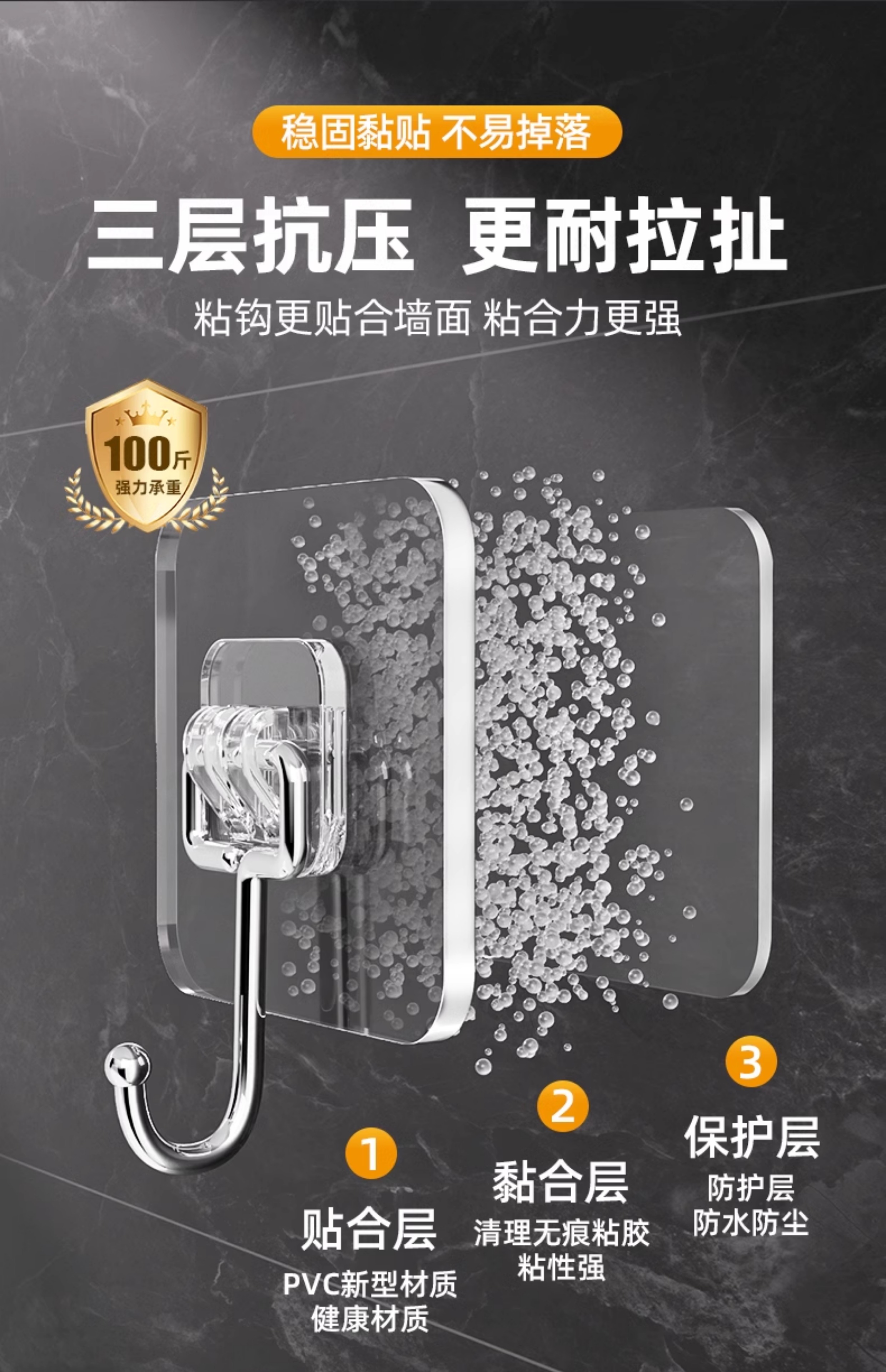 후크 펀치 프리 스티커 후크 벽 아크릴 하중 스테인레스 스틸 후크 노마크 네일 도어 기숙사 투명 후크