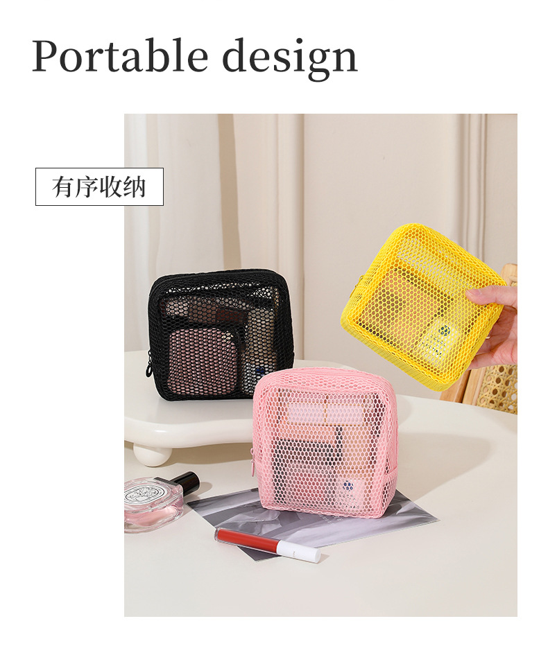 도파민 컬러 두부 휴대용 메쉬 화장품 가방 립스틱 작은 사각형 가방 저장 가방 메쉬 위생 면화 가방