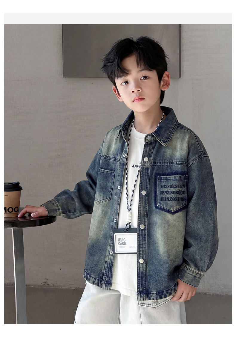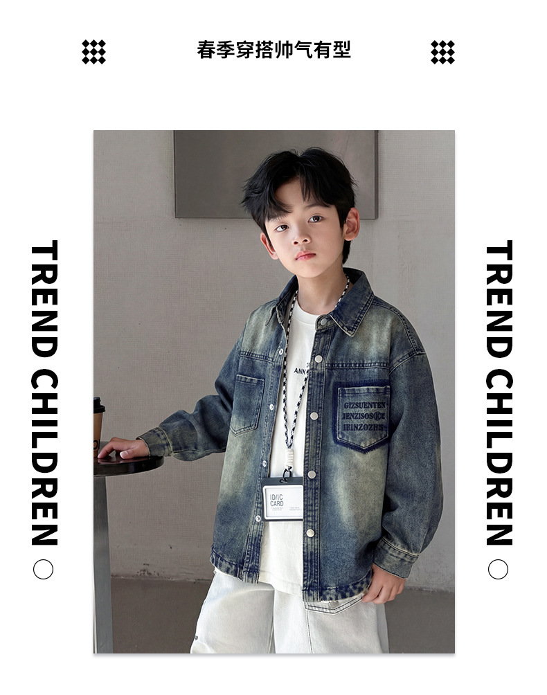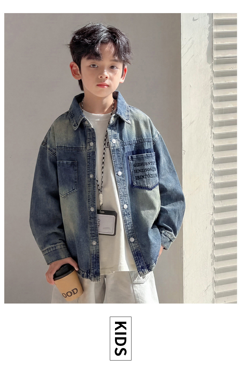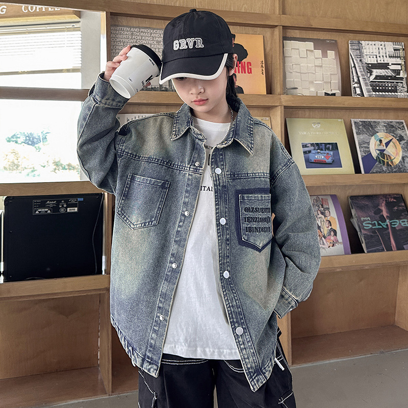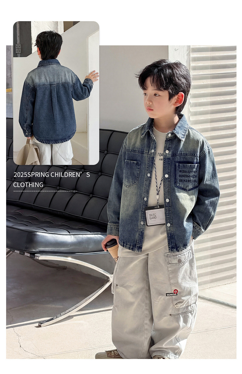 소년 데님 재킷 가을 2025 새로운 잘 생긴 어린이 가을 아동 의류 큰 소년 가을 재킷 탑스토어 가기